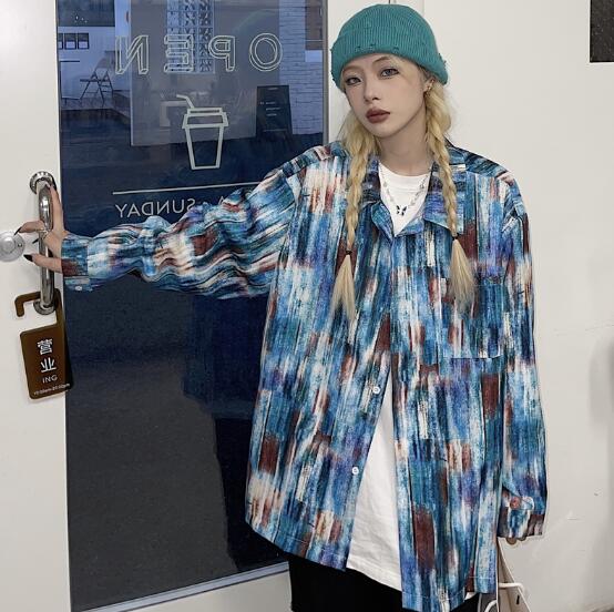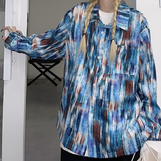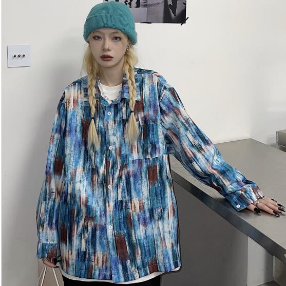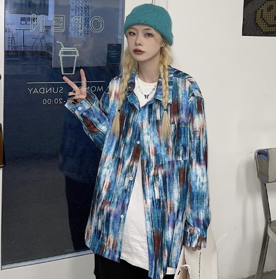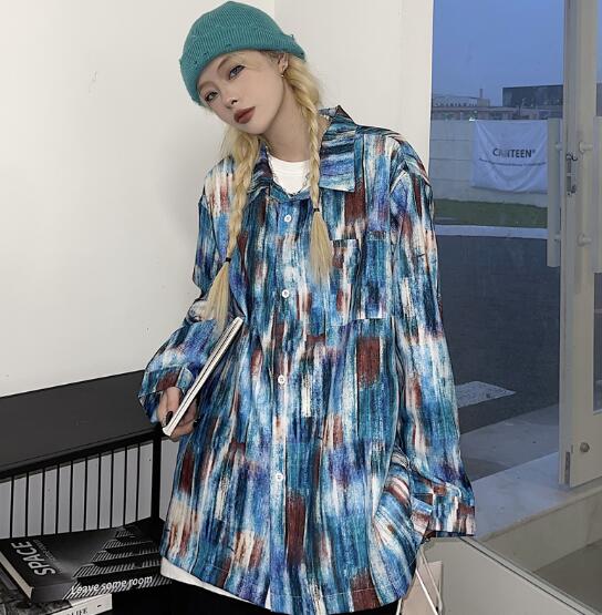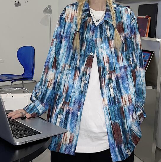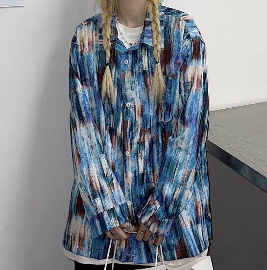 柄シャツ マーブルダイダイ柄 長袖 ビ