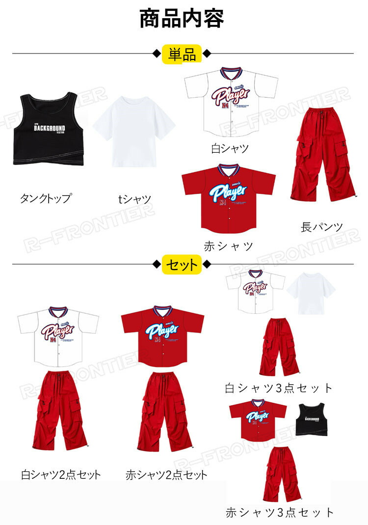 Key0: タンクトップ tシャツ 白シャツ 赤シャツ 長パンツ 白シャツ2点セット 赤シャツ2点セット 白シャツ3点セット 赤シャツ3点セット
