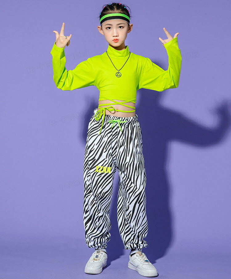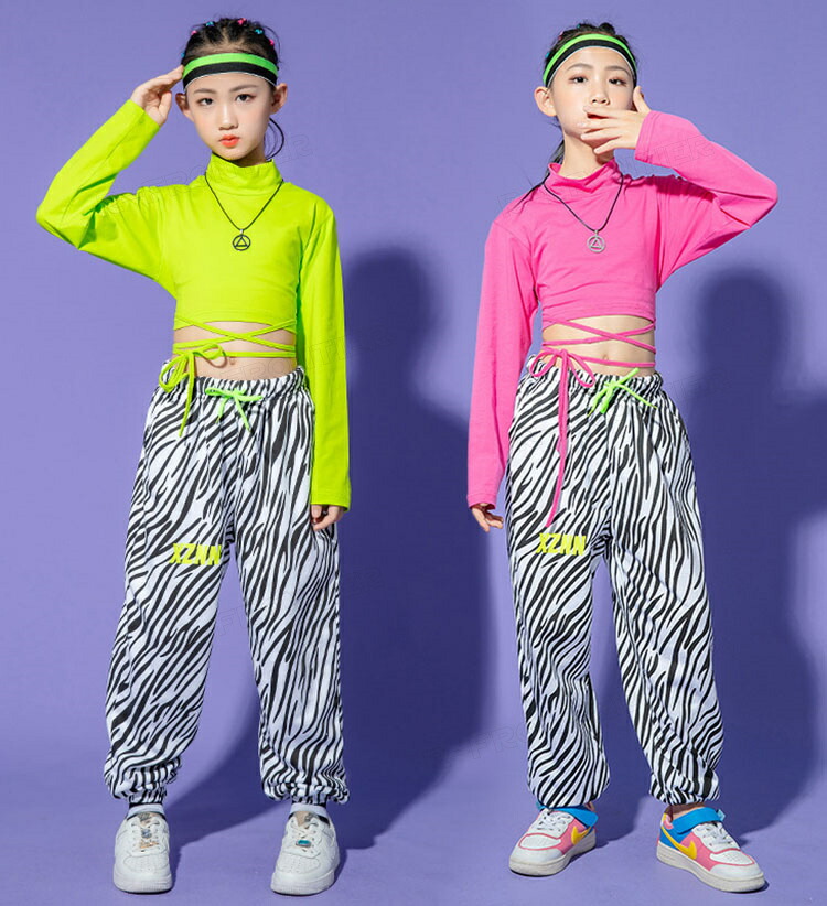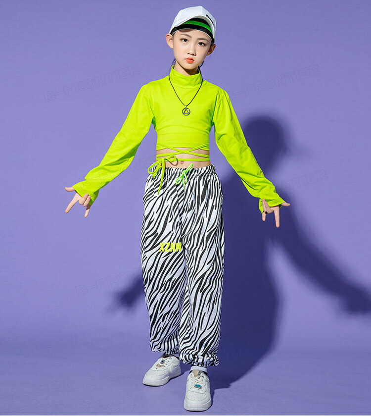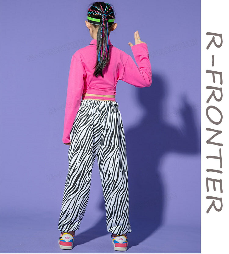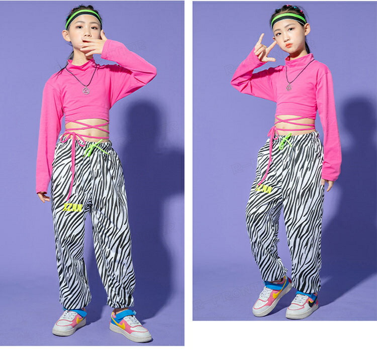 ダンス衣装 キッズ セットアップ 女の子 へそ出し トップス ゼブラ柄 パンツ 長ズボン ヒップホップ 子供 女の子 ステージ衣装 団体服 発表会 演出服 韓国
