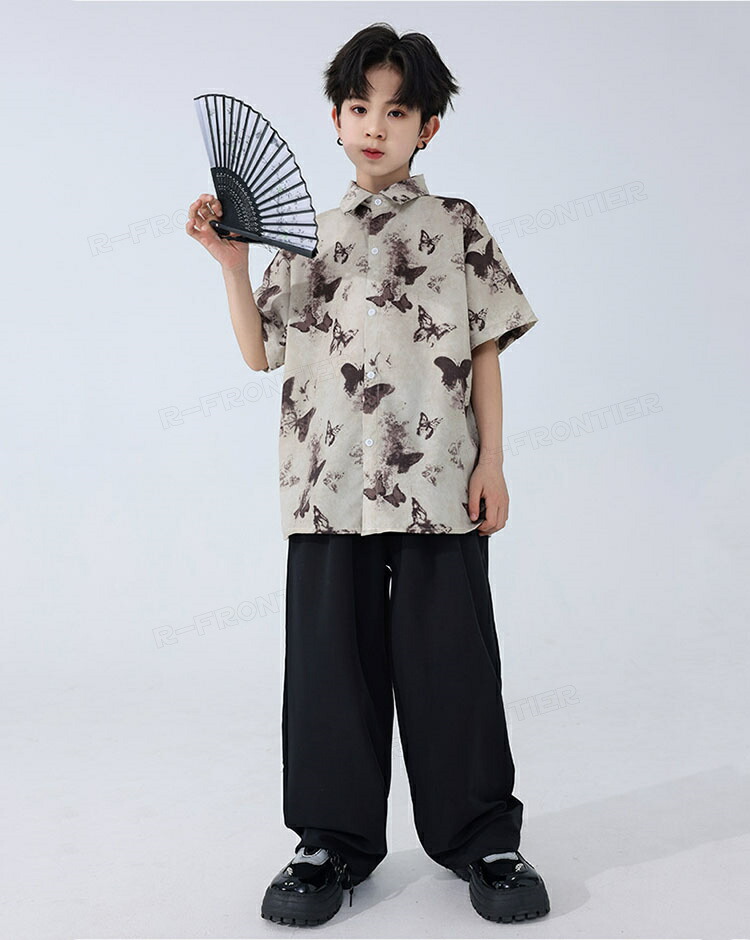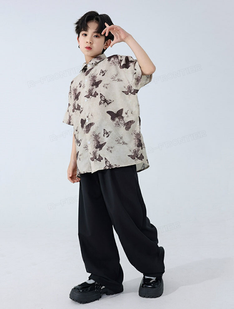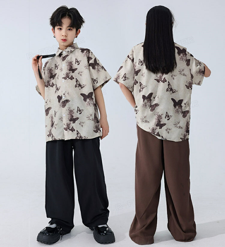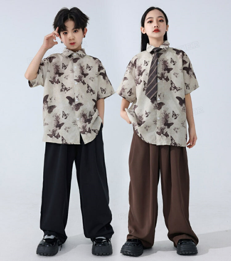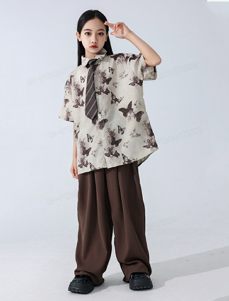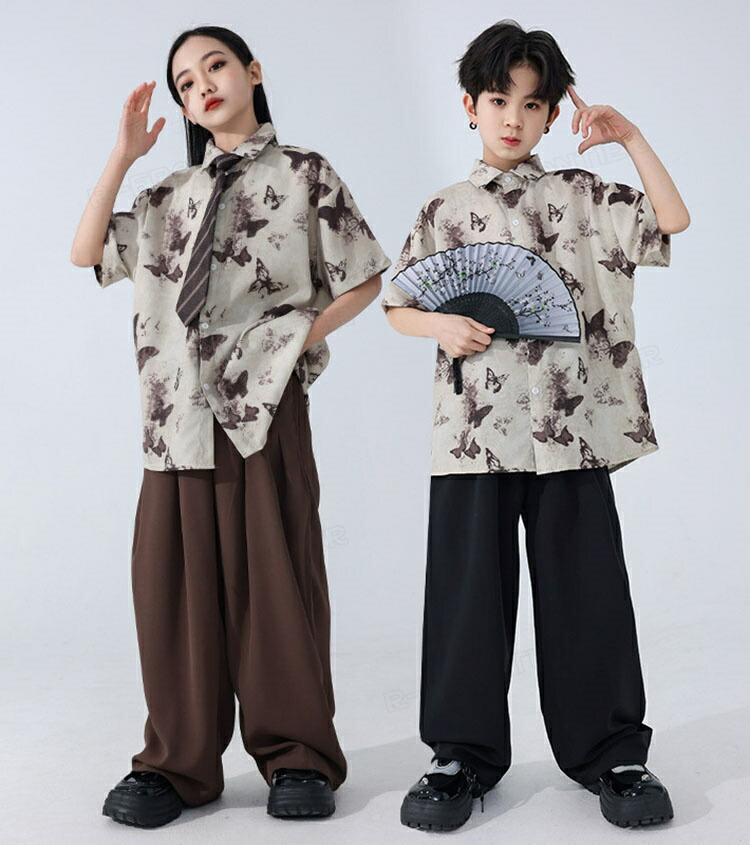 キッズ ダンス衣装 セットアップ 柄シャツ パンツ ジャズダンス ガールズ 韓国 ヒップホップ hiphop セットアップ 演出服 応援団 練習着 120 180