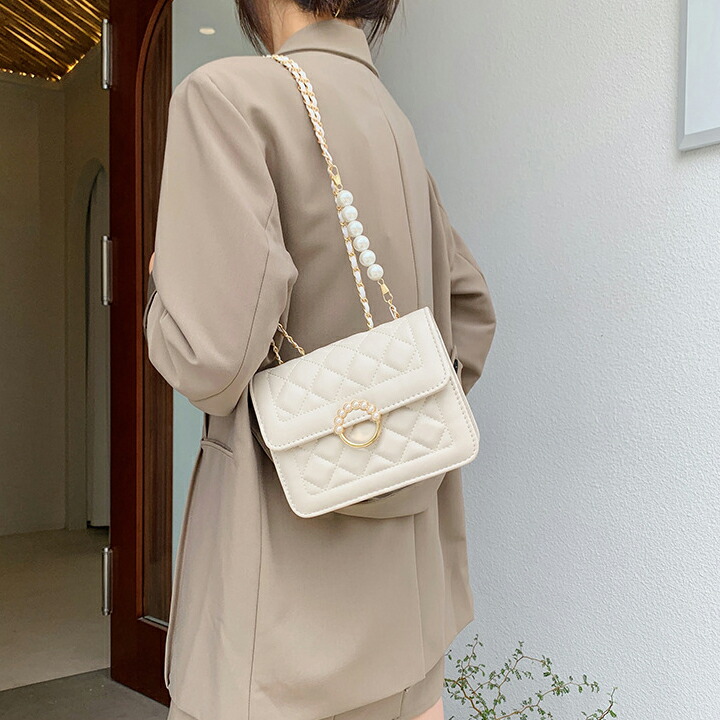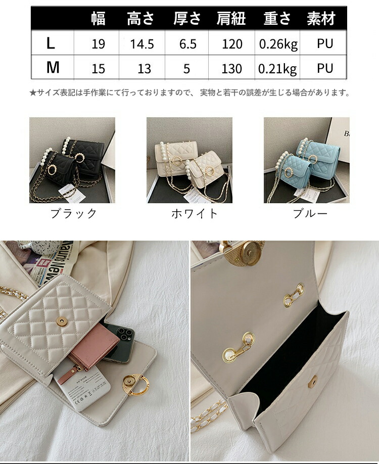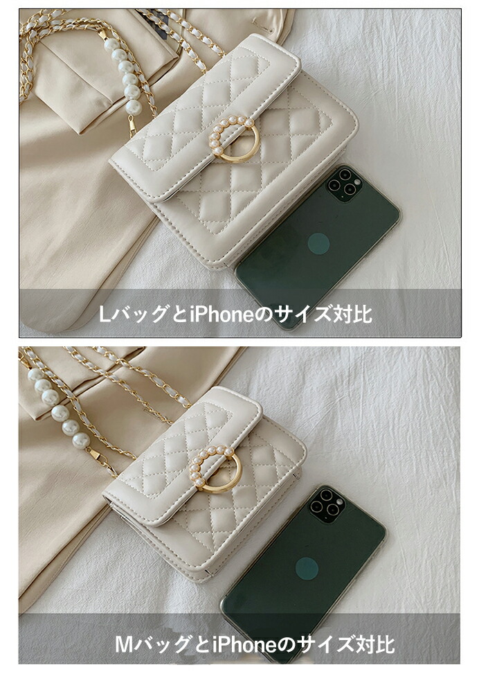 スマホポーチ パール バッグ レディース キラキラ 携帯バック チェック 可愛い チェーン 黒 白 グリーン 財布 斜め掛け