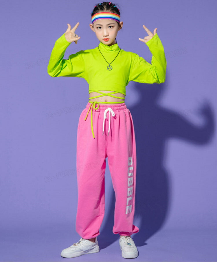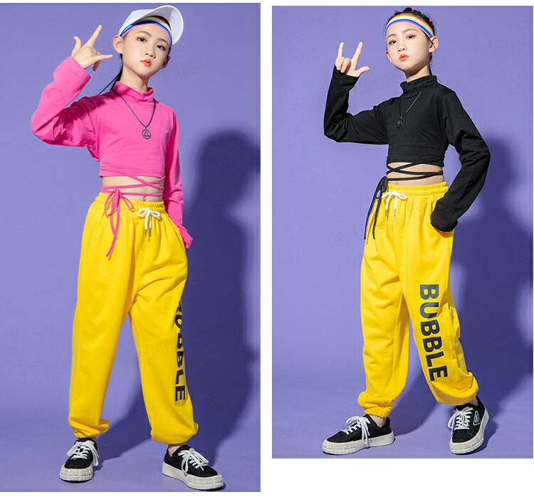 ダンス衣装 キッズ ヒップホップ 女の子 へそ出しトップス パンツ 長ズボン 子供 女の子 ステージ衣装 団体服 発表会 演出服 韓国