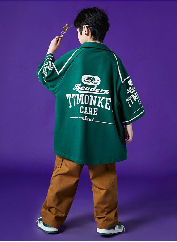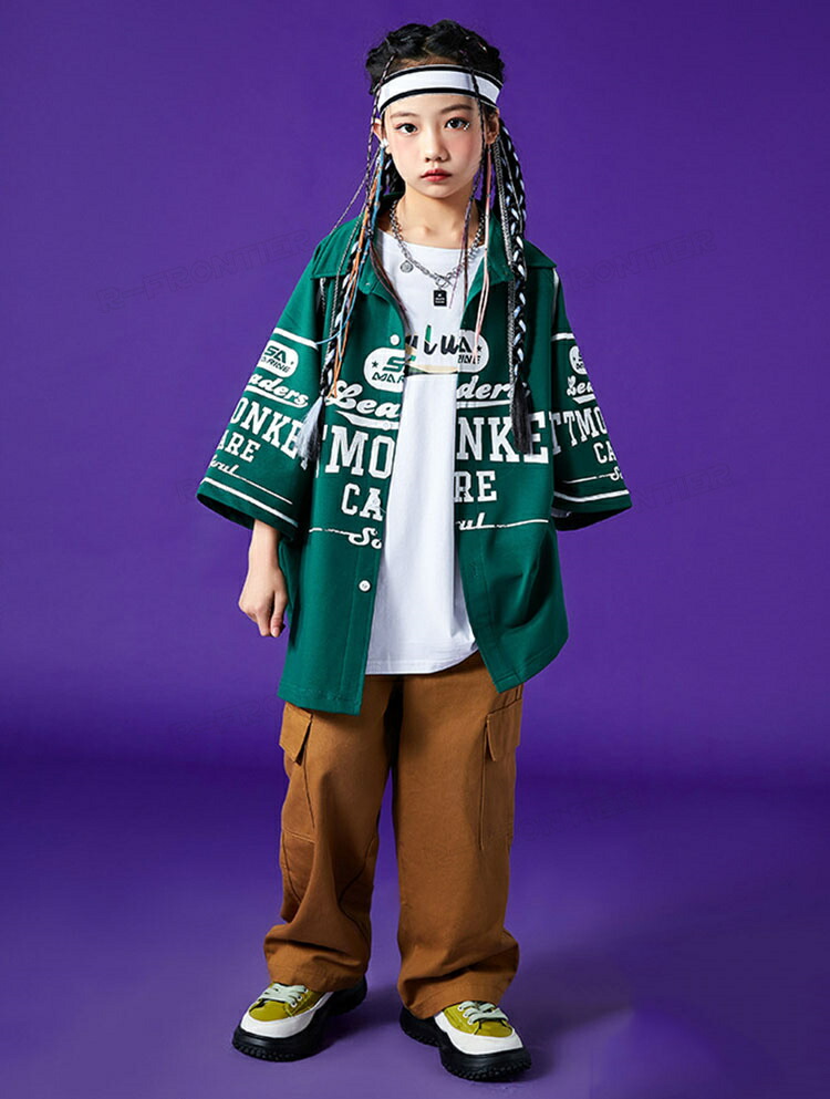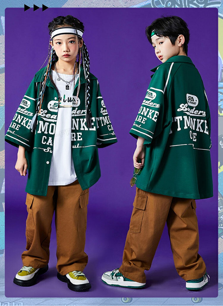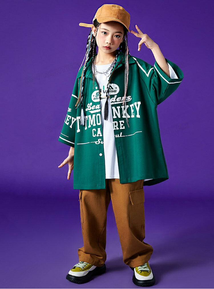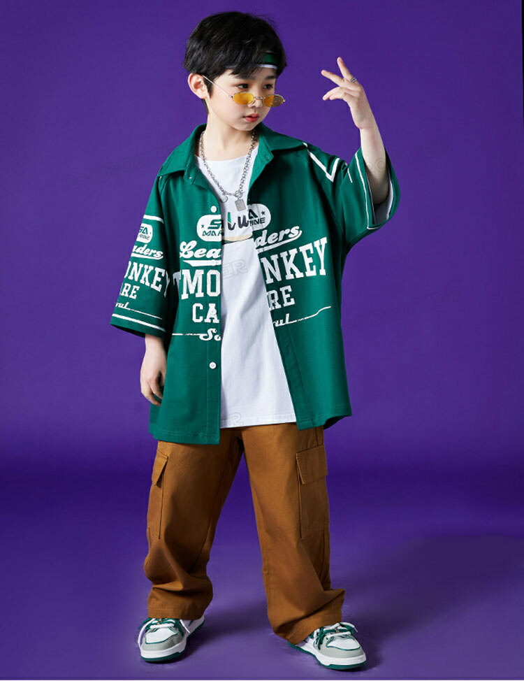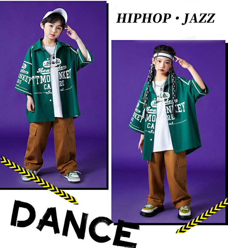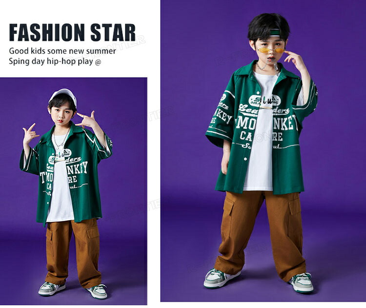 ダンス衣装 キッズ 上下セット カーゴパンツ シャツ 韓国 ヒップホップ ジャズダンス hiphop 演出服 応援団 練習着 110-180cm