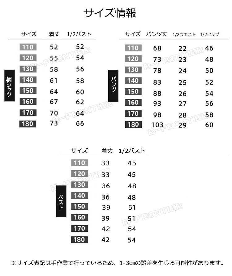 horizontal-key: パンツのみ 柄シャツAのみ 柄シャツBのみ 柄シャツA+パンツ 柄シャツB+パンツ 柄シャツA+パンツ+ベスト 柄シャツB+パンツ+ベスト