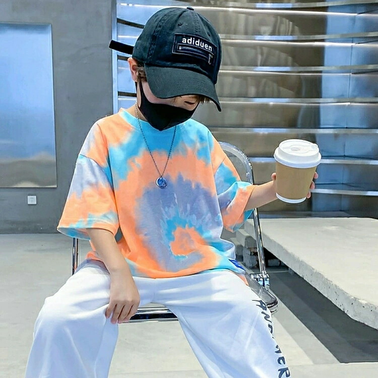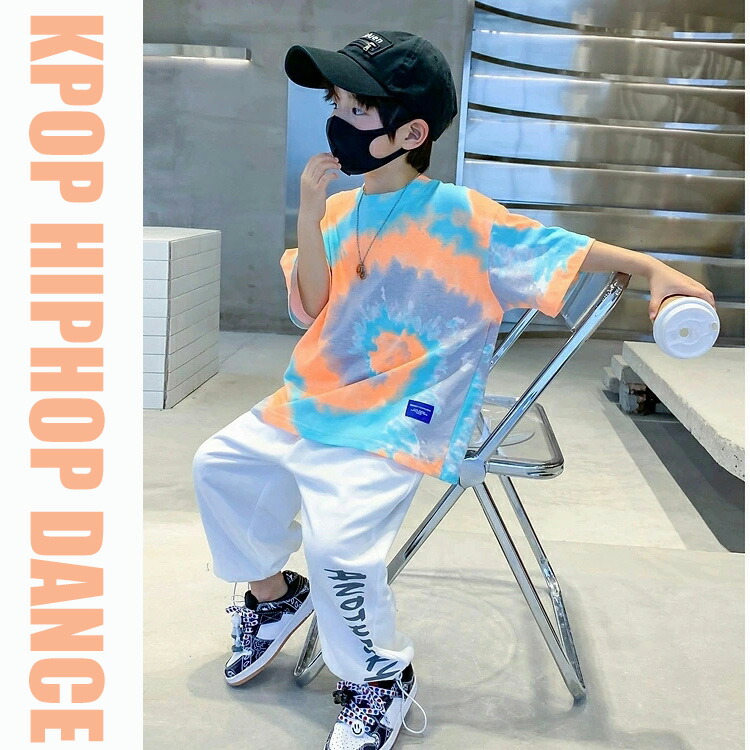 タイダイ柄 キッズトップス キッズダンス キッズ衣装 ヒップヒップ タイダイ柄Tシャツ 半袖 キッズダンス衣装 レッスン着 練習着 ジュニア 個性派 派手 タイダイ マーブル柄 舞台 映える
