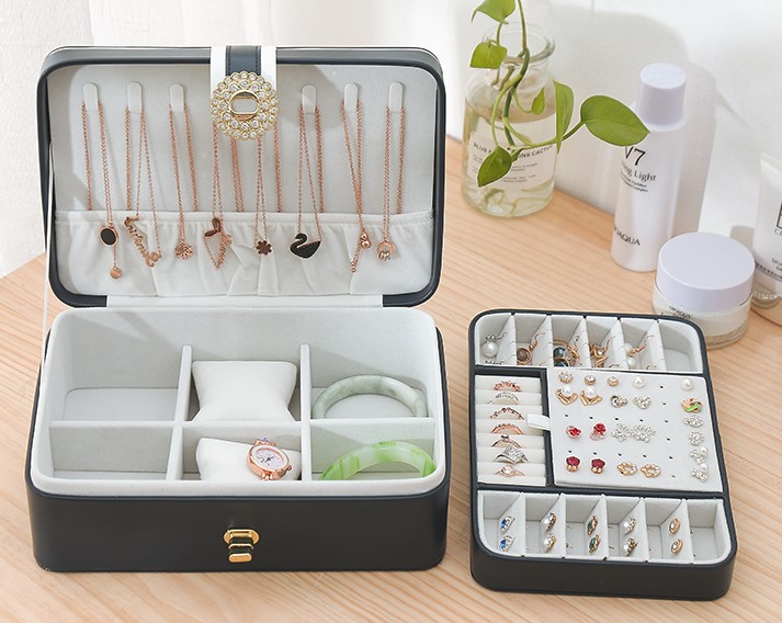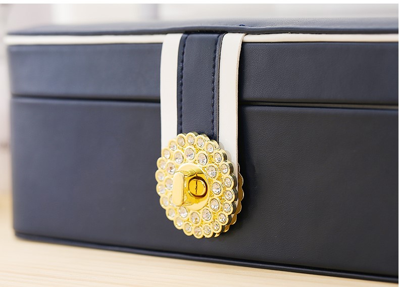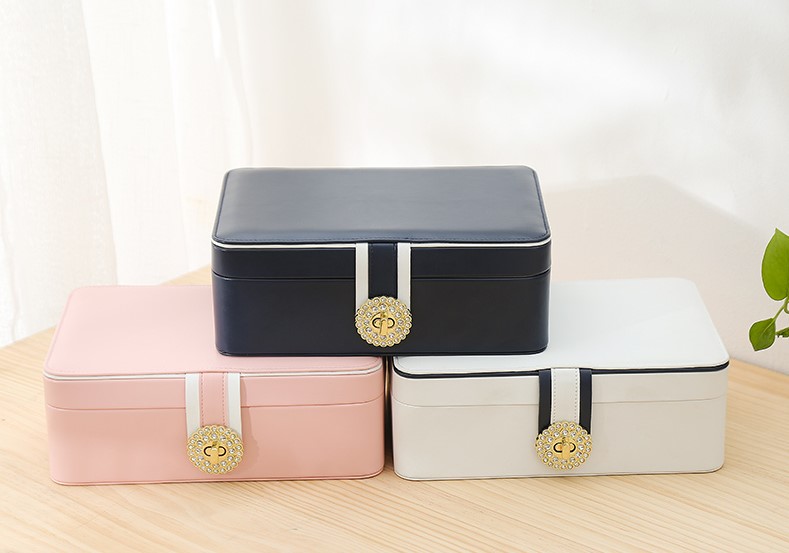 ジュエリー2段ボックス3色収納ピアス指輪ネックレスアクセサリーリング時計白ホワイトピンクネイビー紺かわいいおしゃれ韓国大容量ケースコンパクト小物入れ仕分け卓上机上高見えキラキラ高級ポーチレザー革