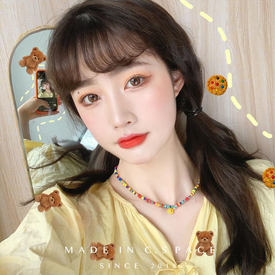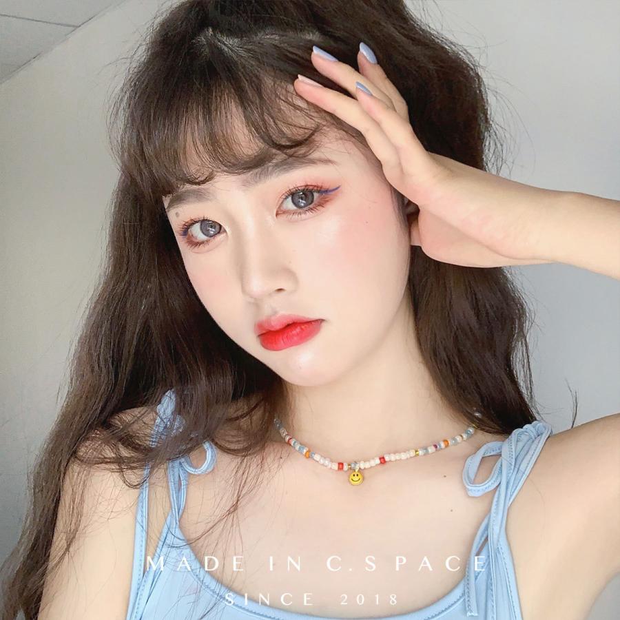 2色ネックレスチョーカーカラフルニコちゃんスマイルビーズアクセサリーおしゃれかわいいかっこいい流行奇抜派手ビビットカラーパステル原色手作り風ビジューヒップホップHIPHOPレディースメンズ