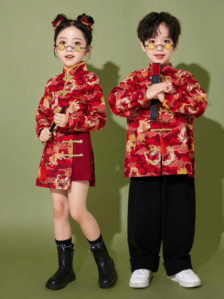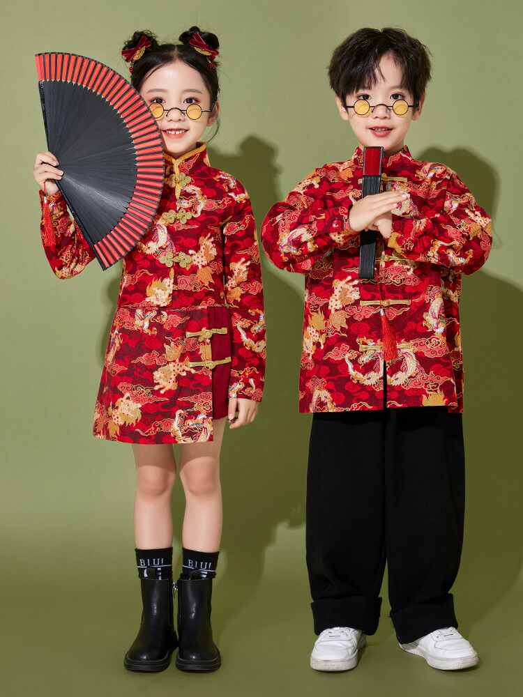 ダンス衣装 ヒップホップ キッズ 赤 黒 セットアップ 女の子 男の子 かっこいい 半袖 赤ジャケット 韓国 ジャズダンス 団体 HIPHOP 演出服 応援団 イベント 110 120 130 140