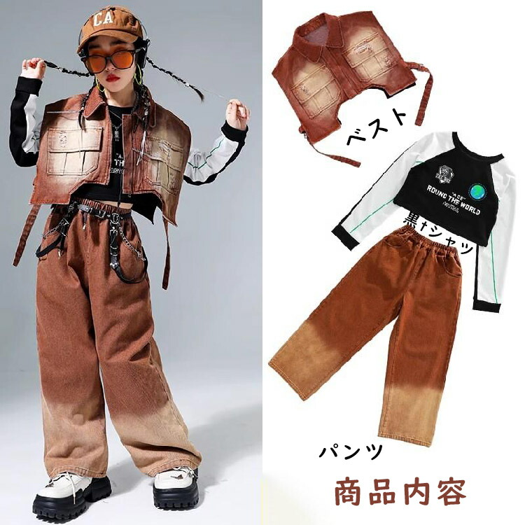ダンス衣装 ヒップホップ キッズ 茶色