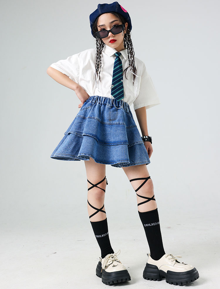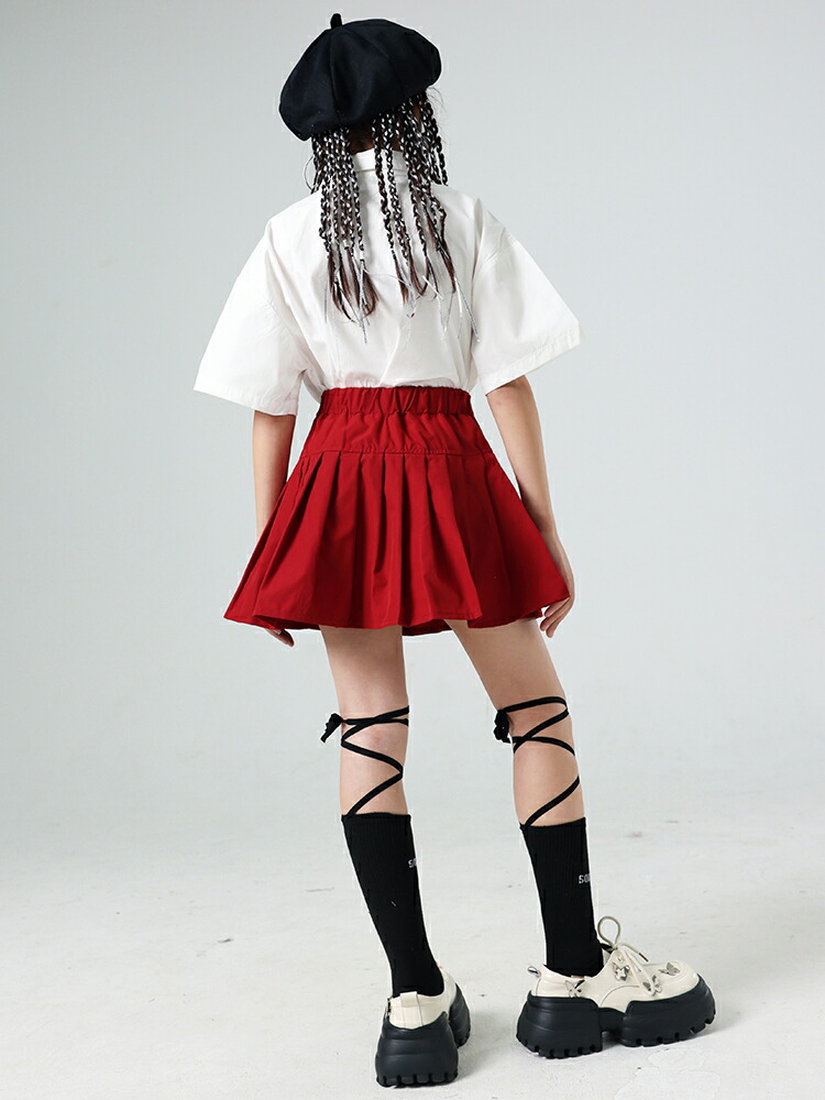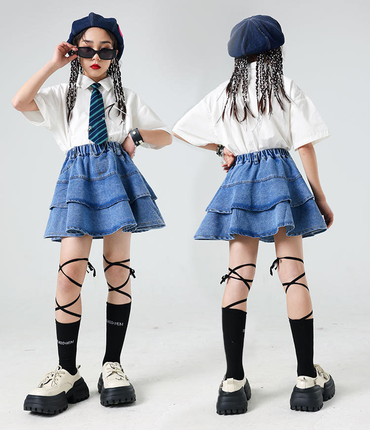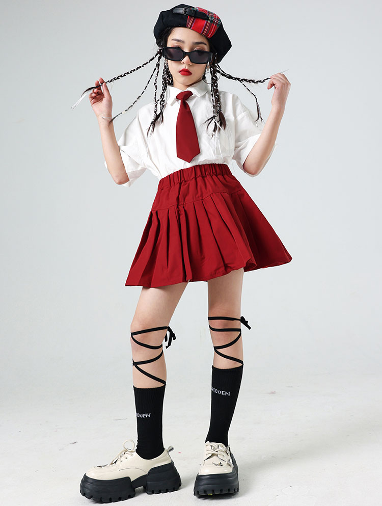 horizontal-key: 白シャツのみ 黒スカートのみ 赤スカートのみ デニムスカートのみ 白黒3点セット 白赤3点セット 白青3点セット
