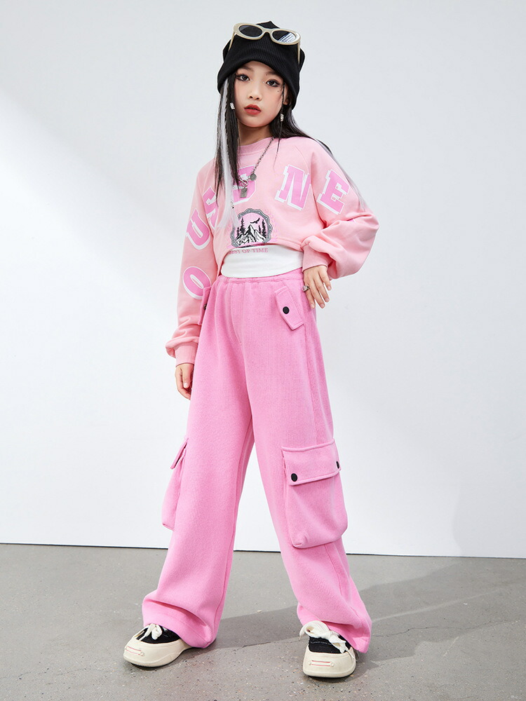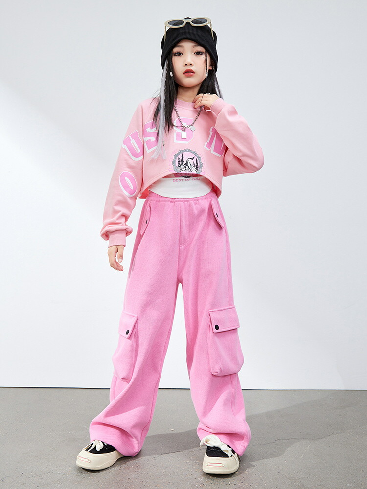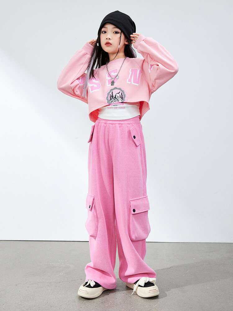 ダンス トップス へそ出し キッズ 女の子 かっこいい 赤ジャケット スカート 黒パンツ 長袖 ヒップホップ 韓国 k-pop衣装 ジャズダンス 団体 HIPHOP 演出服 応援団 イベント110-1