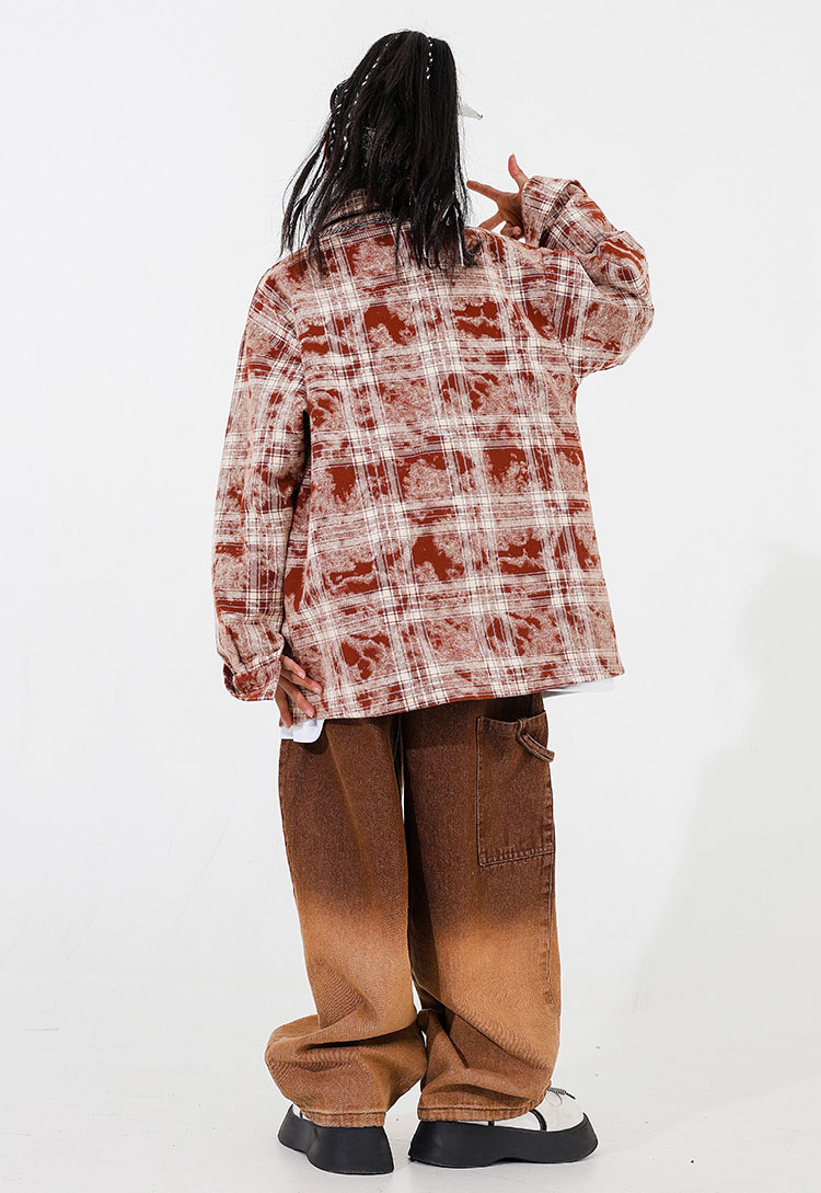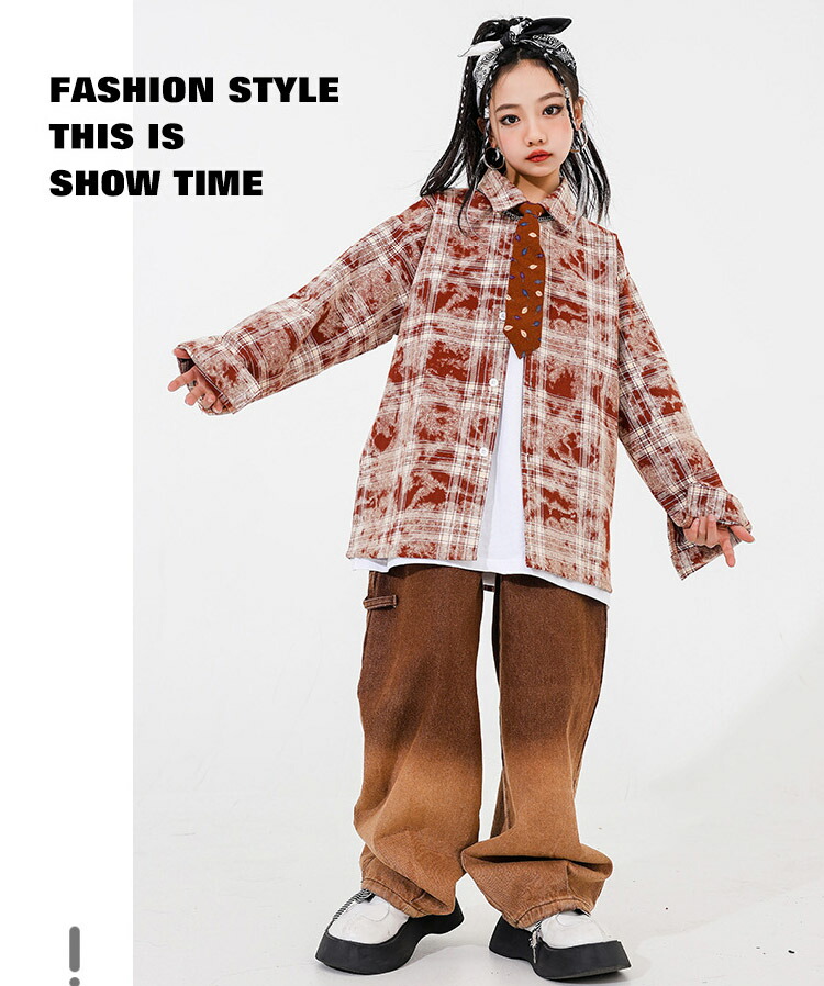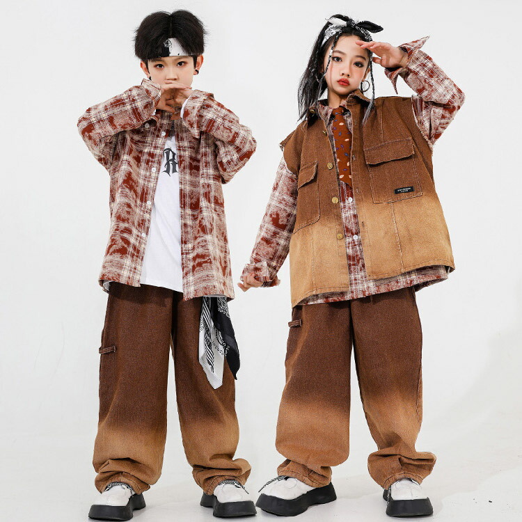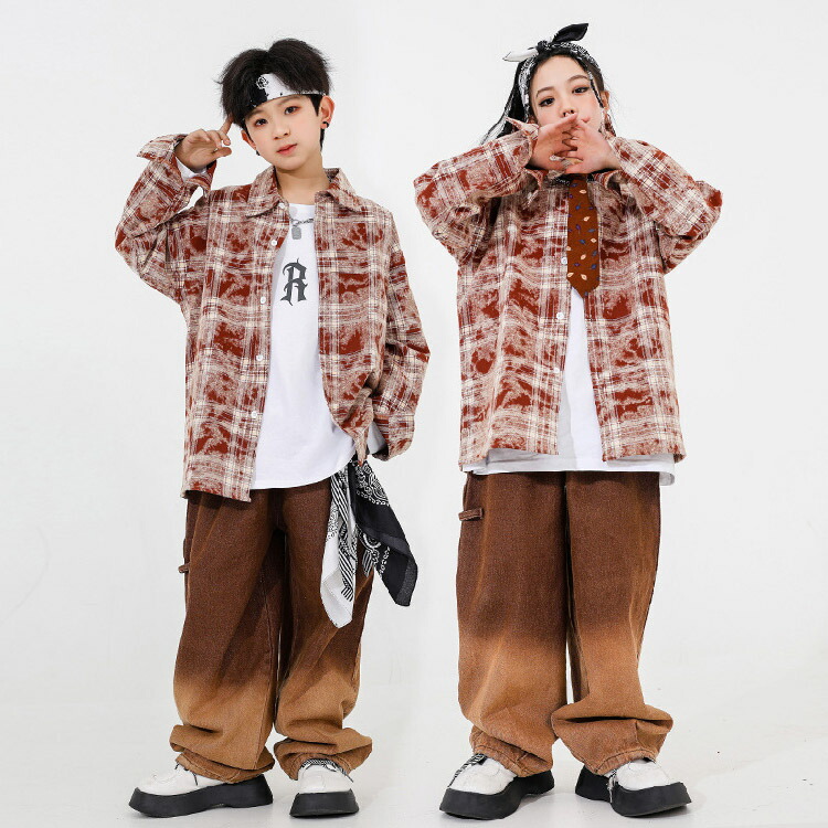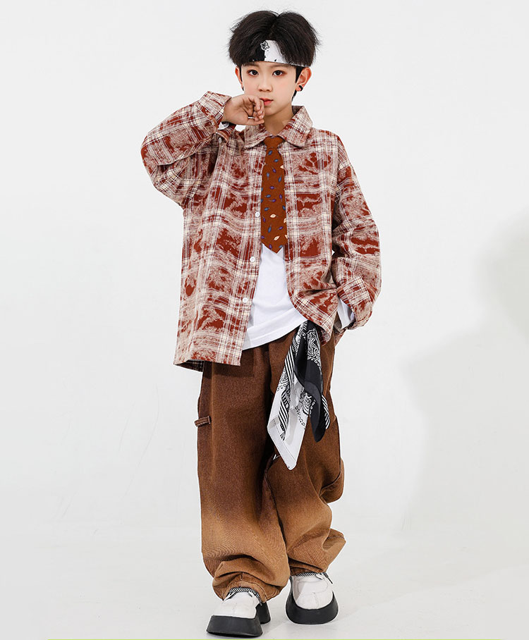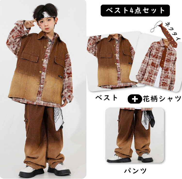 柄シャツ 茶色 ベスト 絞り染め キッ