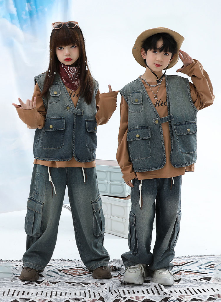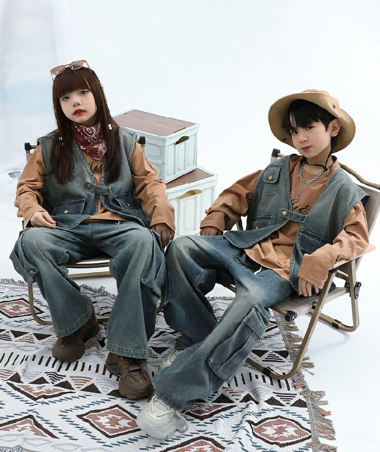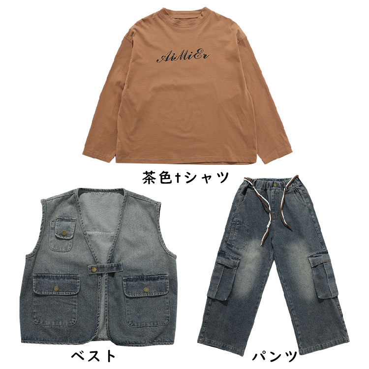 horizontal-key: 茶色tシャツのみ ベストのみ パンツのみ ベスト+パンツ 茶色tシャツ+ベスト+パンツ