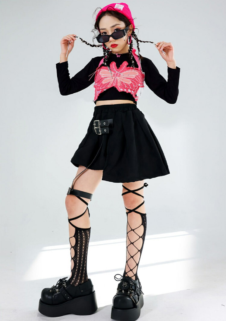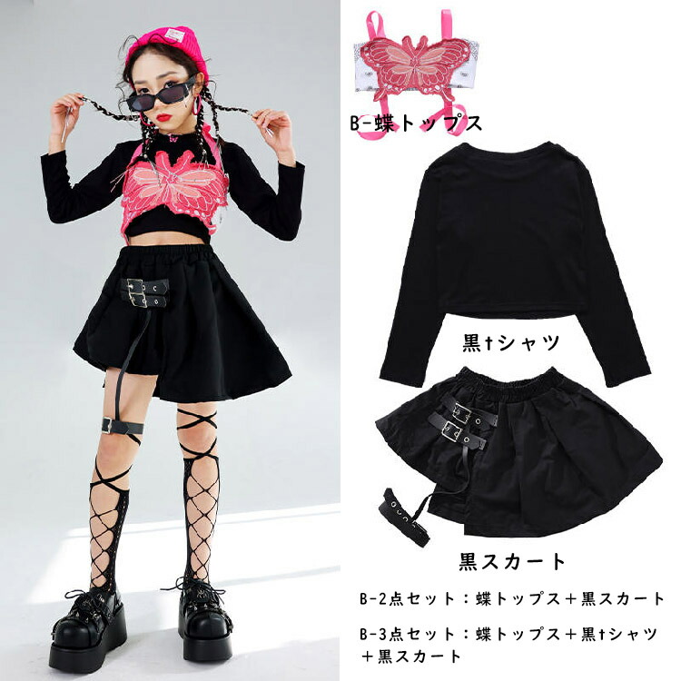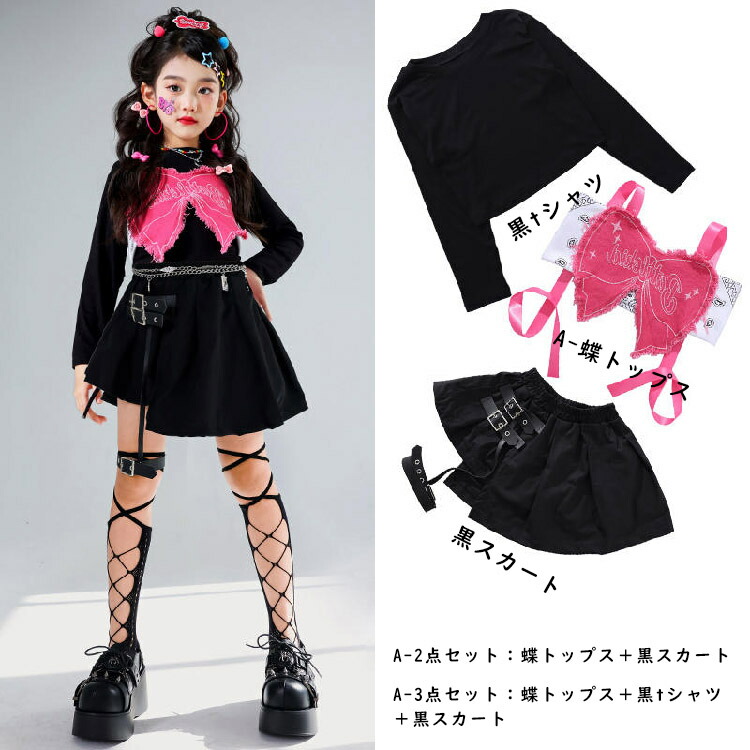 horizontal-key: 黒tシャツのみ typeA-蝶トップスのみ typeB-蝶トップスのみ 黒スカートのみ typeA-2点セット typeB-2点セット typeA-3点セット typeB-3点セット
