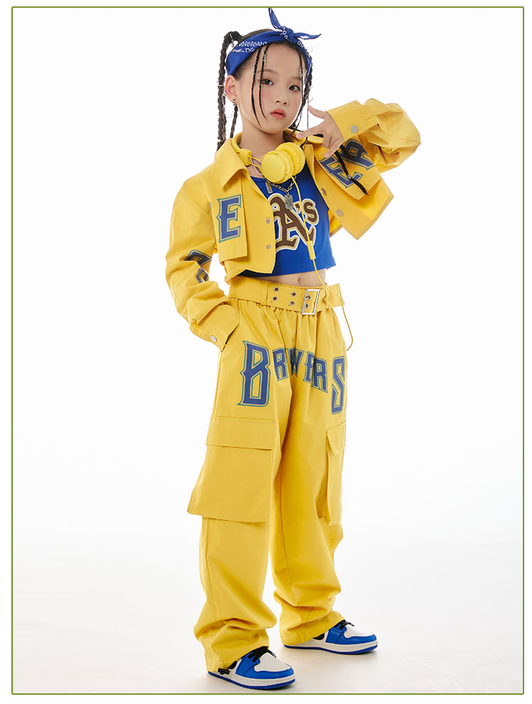 ダンス衣装 キッズ ヒップホップ セットアップ へそ出し イエロー ピンク ジュニア 団体服 女の子 ゆったり ダンスウエア 韓国 子供服 大人っぽい