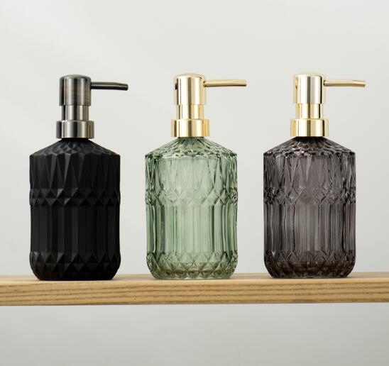 詰め替えボトルホルダーレトロ韓国雑貨インテリア北欧おしゃれ洗面所ハンドソープ容器収納大容量ソープポンプソープボトルかわいいでこぼこグリーンクリアグレーブラック