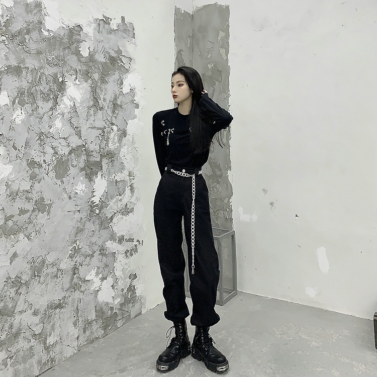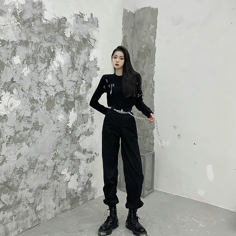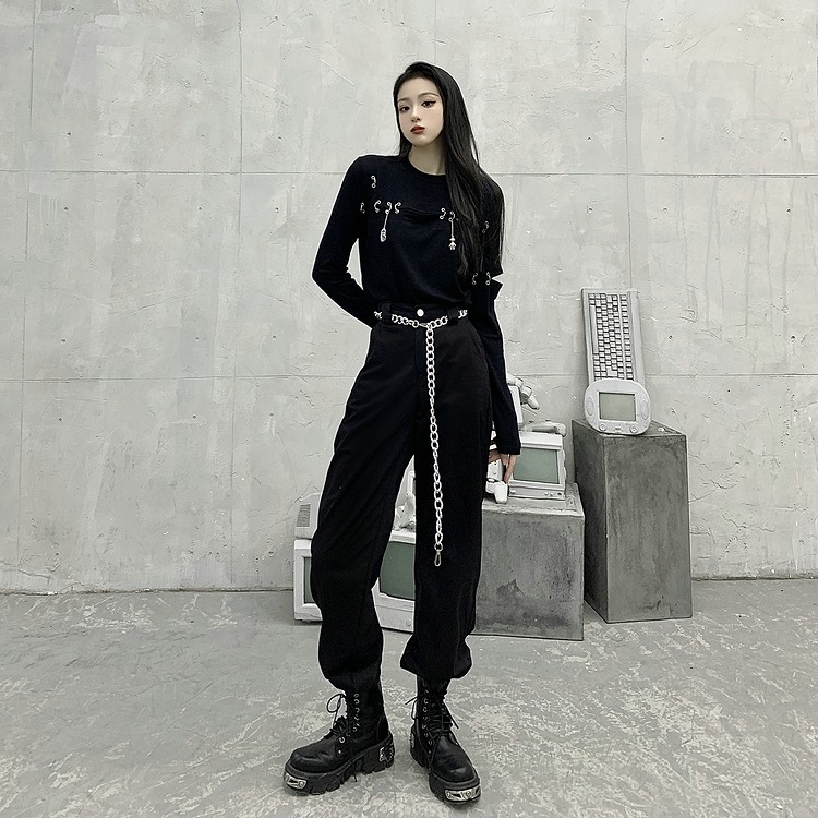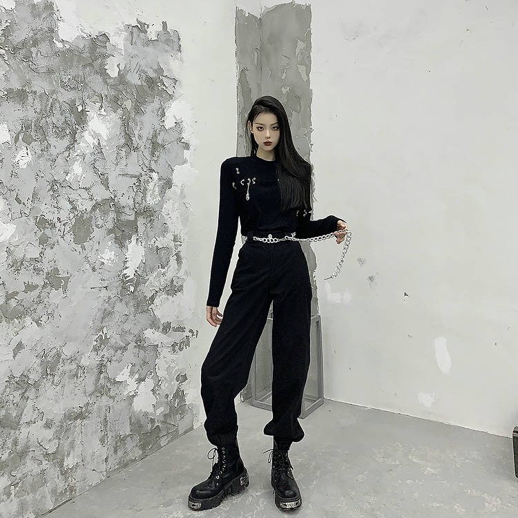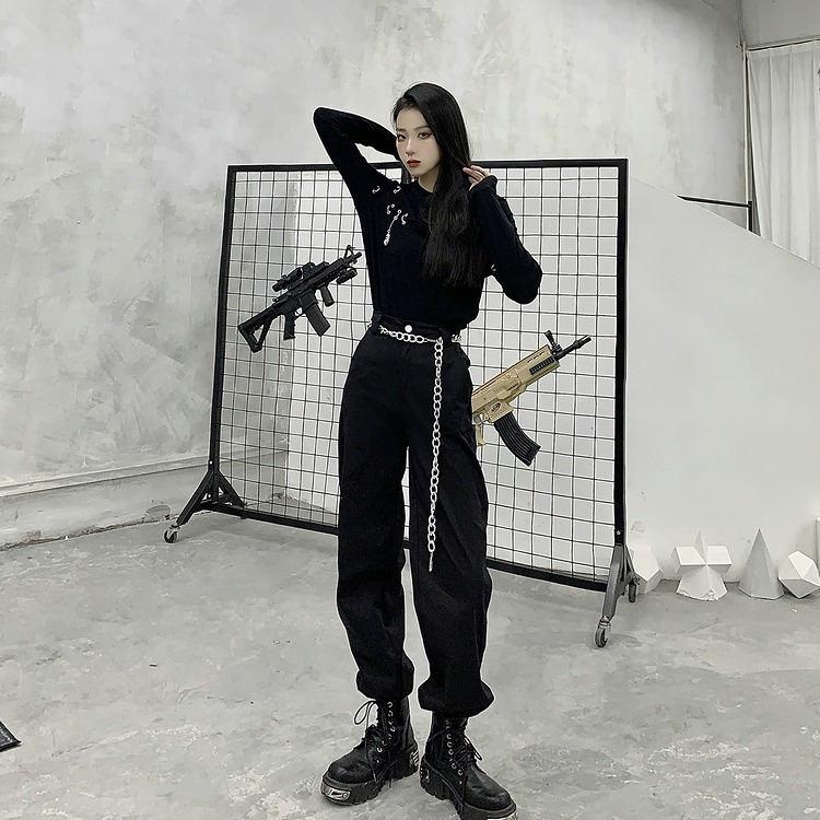 パンツ ズボン 切り替え スリム ハイウエスト 無地 HIPHOP ヒップホップ 原宿系ファッション 韓国風ダンス 衣装 ヒップホップ HIPHOP 個性 奇抜 かわいい 青文字系 ボトムス レディー