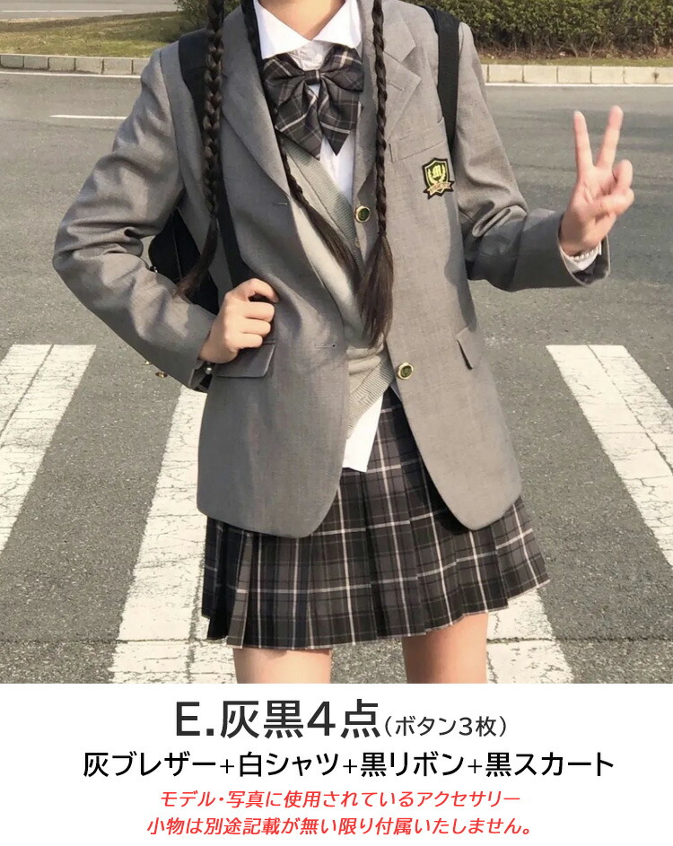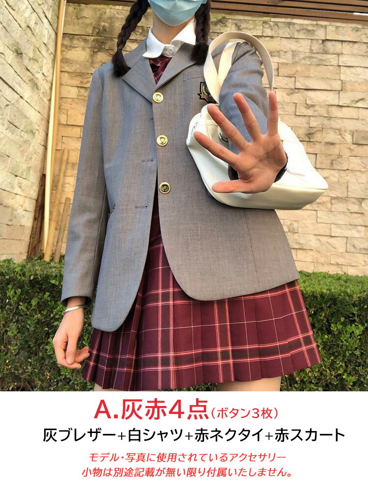horizontal-key: A.灰赤4点 (ボタン3枚) B.灰紺4点 (ボタン2枚) C.灰紺4点 (ボタン3枚) D.灰黒4点 (ボタン2枚) E.灰赤4点 (ボタン3枚)