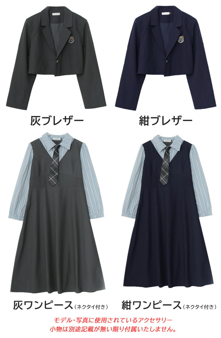 horizontal-key: 灰ブレザー 灰ワンピース 紺ブレザー 紺ワンピース 灰ブレザー+灰ワンピース 紺ブレザー+紺ワンピース