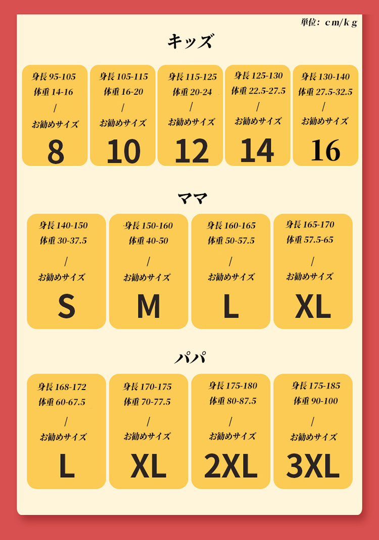 vertical-key: 8# 10# 12# 14# 16# ママ/S ママM ママ/L ママ/XL パパ/L パパ/XL パパ/2XL パパ/3XL