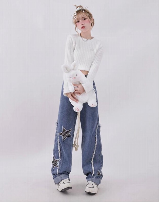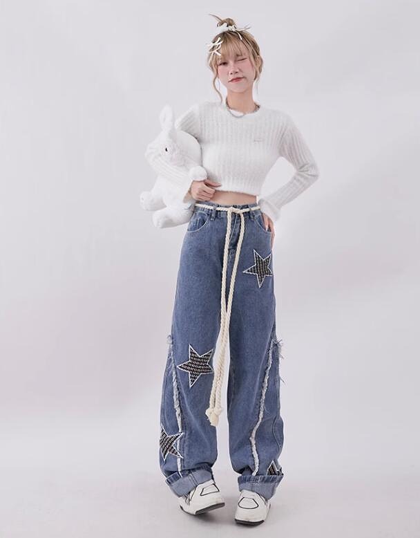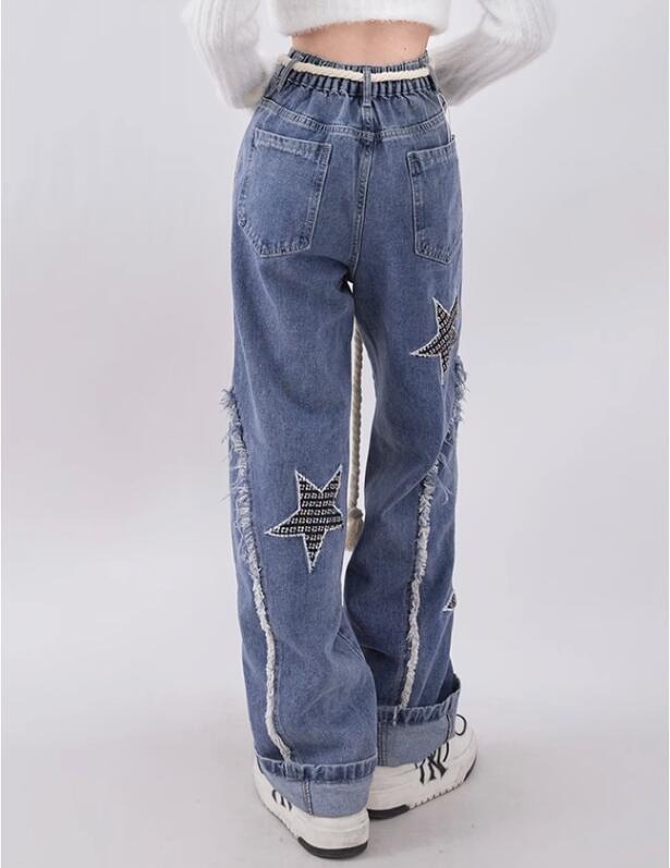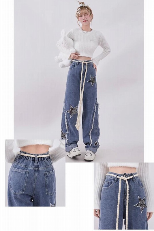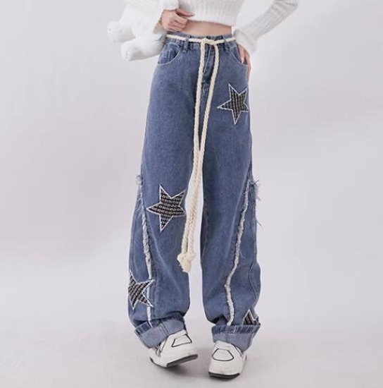 ♪S-XL展開♪ワッペンダメージ星柄ジ