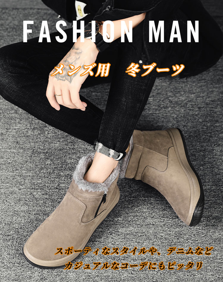 メンズ 冬靴 防寒 スノーブーツ 滑らない 裏起毛 ウインターブーツ 厚底 歩きやすい 裏ボア 暖かい 滑り止め