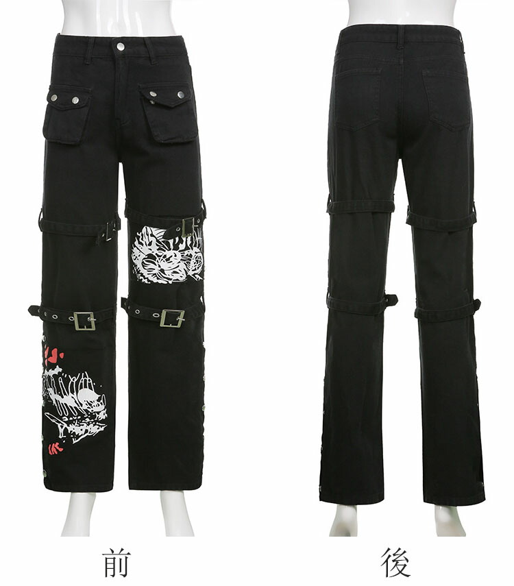 デニムパンツ ビジュー付き