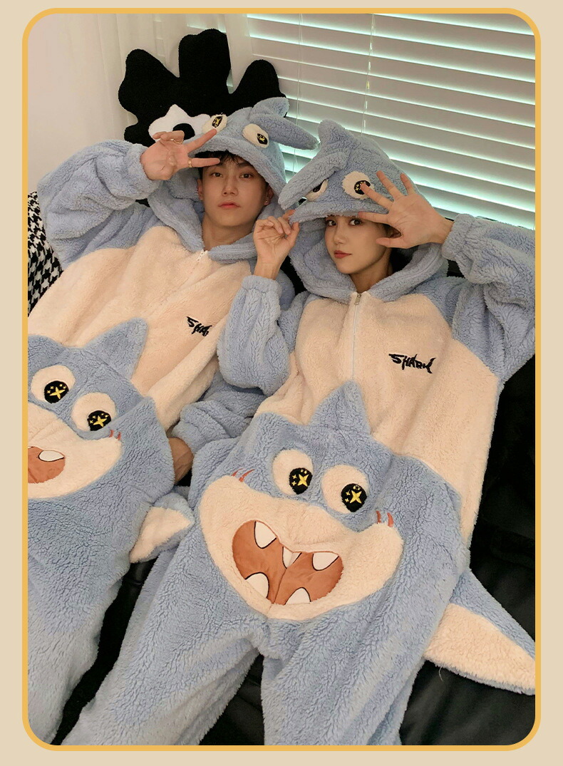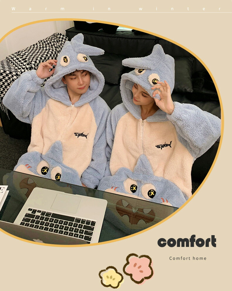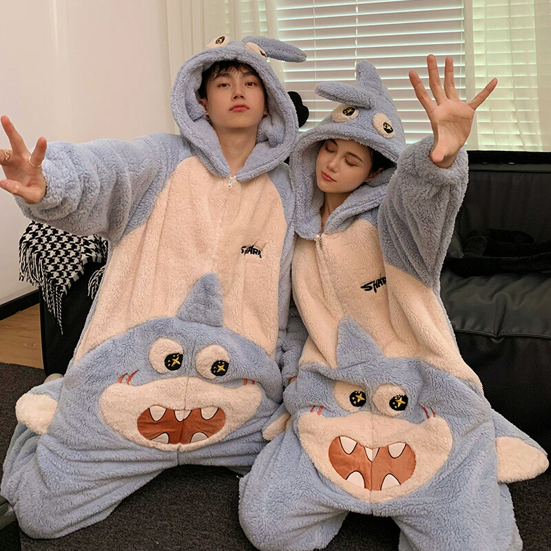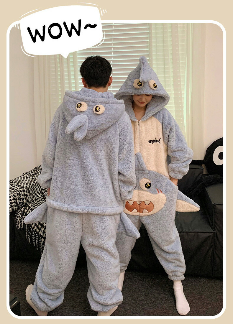 カップルペア 着る毛布 カップル ペア パジャマ 冬 大きいサイズ カップルお揃い 冬 カップル お揃い プレゼント リンクコーデ 可愛い 鯨 長袖 ナイトウェア ギフト