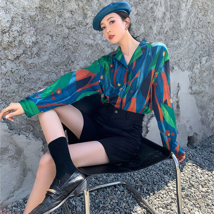 韓国 ダンス衣装 長袖シャツ ヒョウ柄