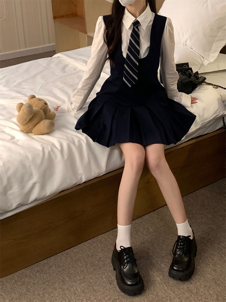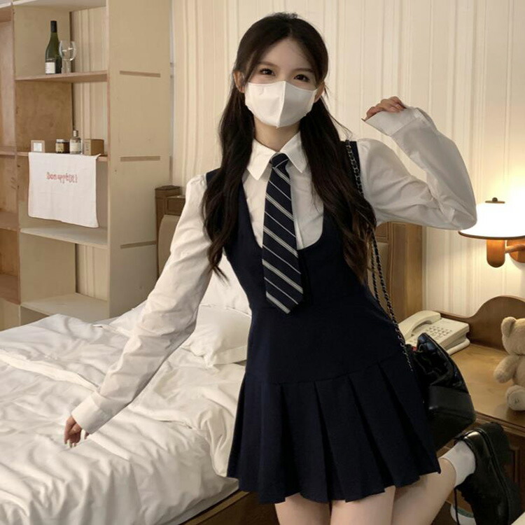 horizontal-key: シャツ「ネクタイ付き」 サロペットスカートのみ シャツ+ネクタイ+スカート
