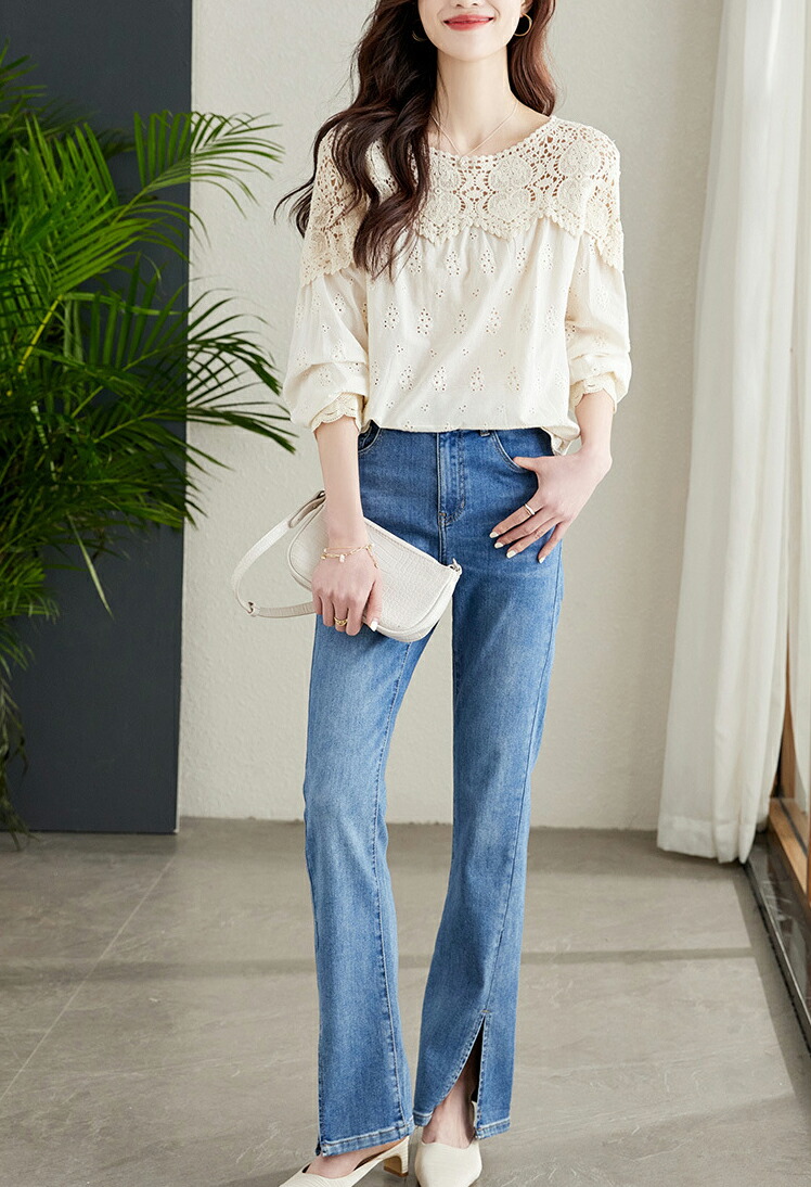 デニムパンツ ビジュー付き