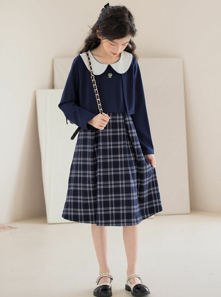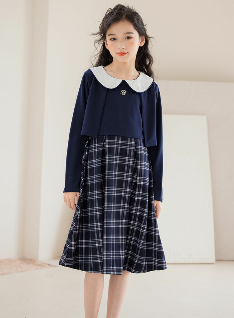 フェイクレイヤード ワンピース 女の子 入学式 卒業式 スカートセット ジュニア 女の子 子供 可愛い 出かけ着 卒服 発表会 110-160cm
