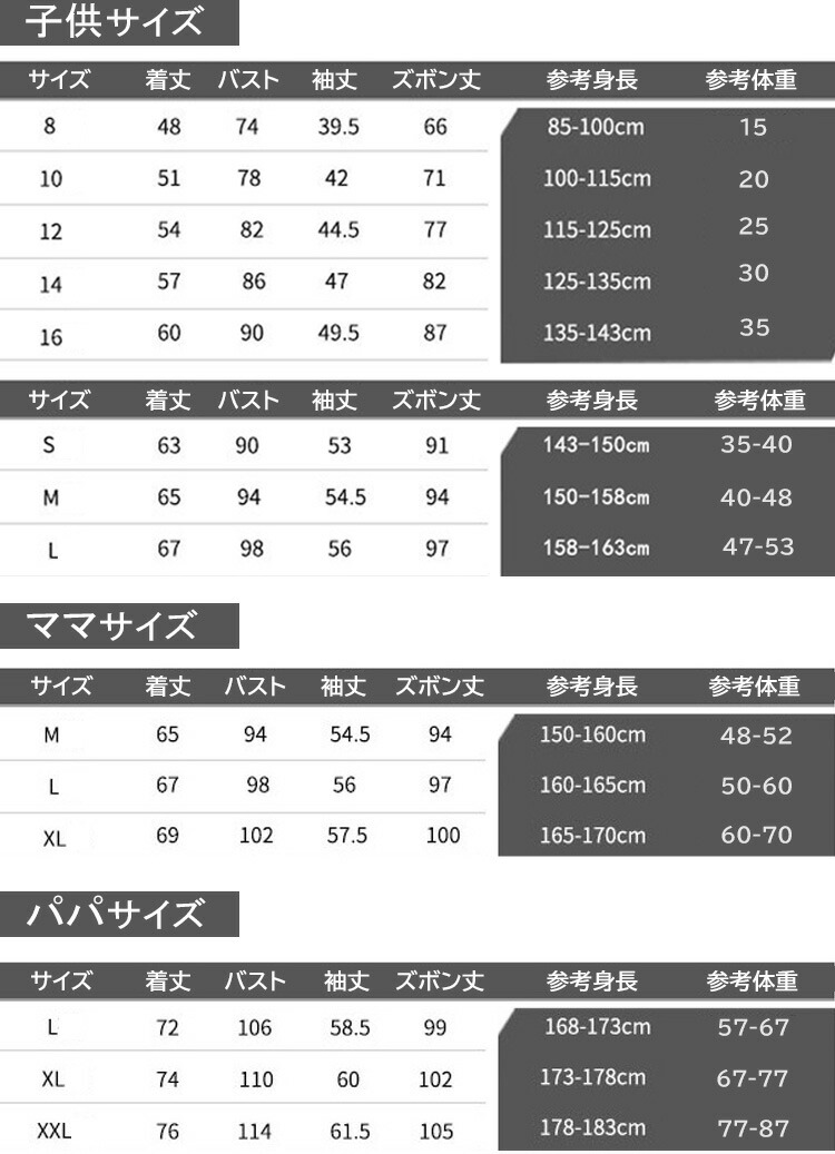 vertical-key: 子供8 子供10 子供12 子供14 子供16 子供S 子供M 子供L ママM ママL ママXL パパL パパXL パパXXL