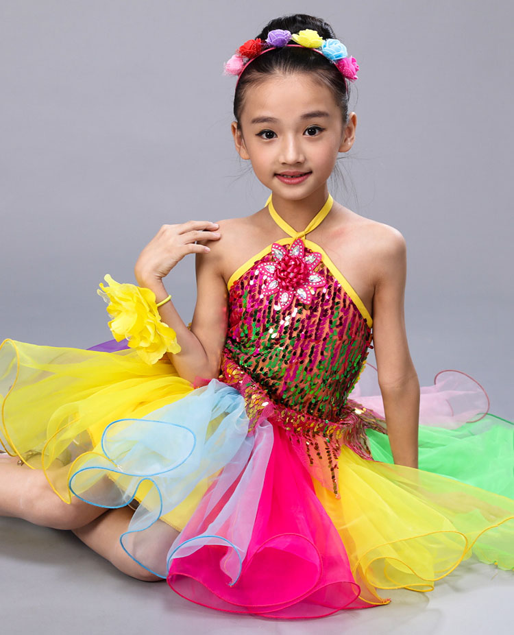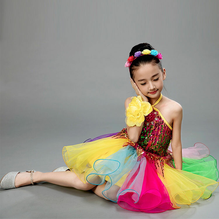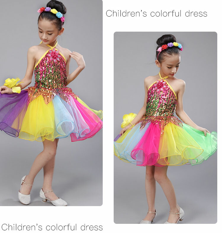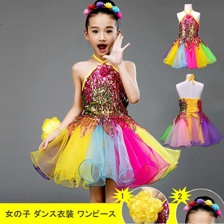 子供用 ワンピース ダンス衣装 チュチュスカート ジュニア 女の子 ダンス衣装 イベント スパンコール キラキラ