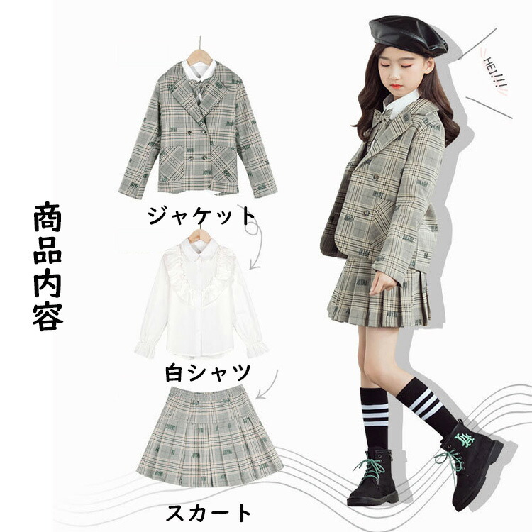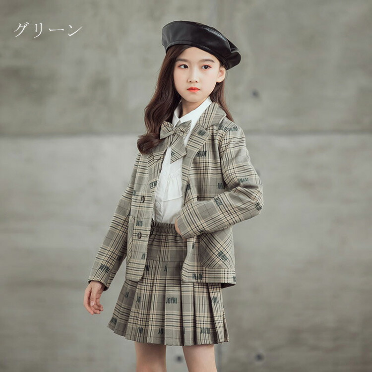 horizontal-key: (カーキ)ジャケット+スカート (グリーン)ジャケット+スカート (カーキ)3点セット (グリーン)3点セット
