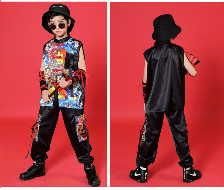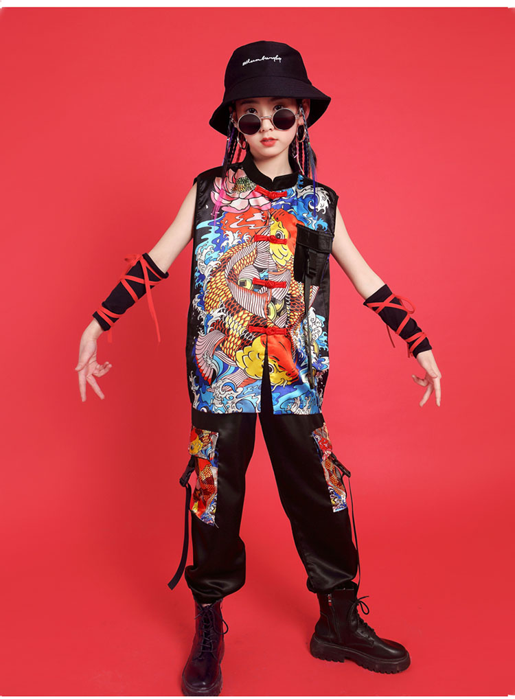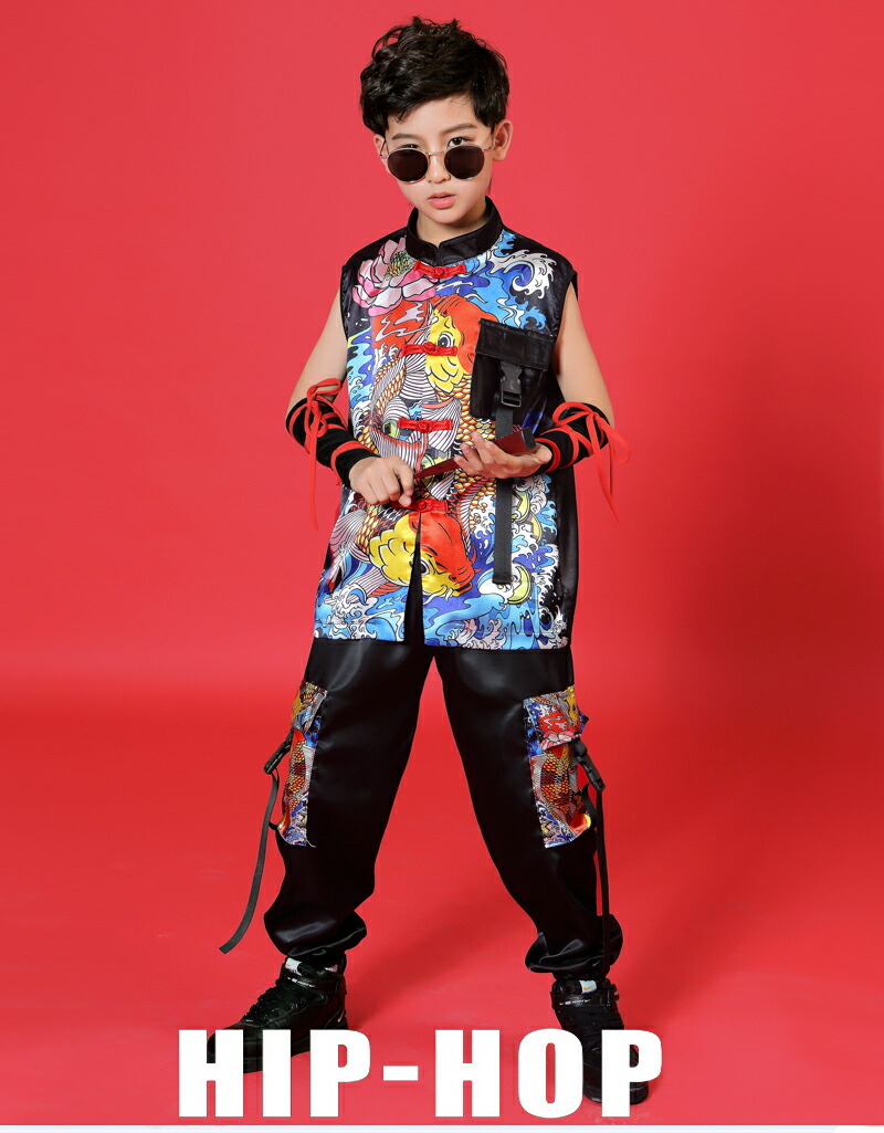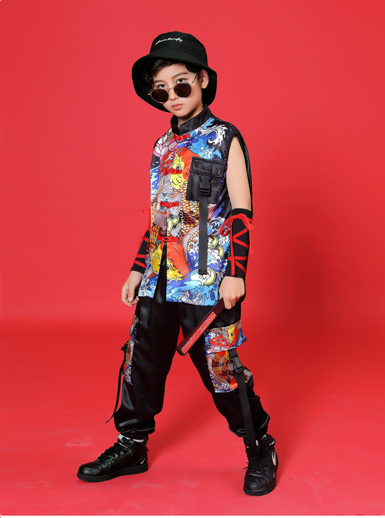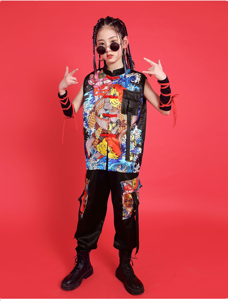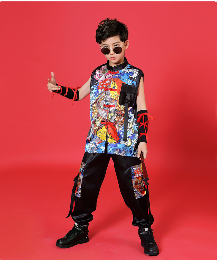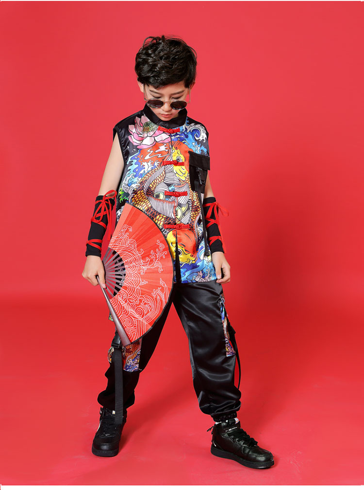 ダンス衣装 キッズ セットアップ ダンス衣装 チャイナ風 ジャズ イベント 民族風 演出服 hiphop 中国風 110-170