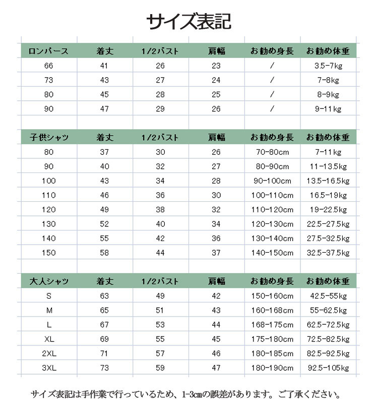 horizontal-key: ロンパース66 ロンパース73 ロンパース80 ロンパース90 子供80 子供90 子供100 子供110 子供120 子供130 子供140 子供150 大人服S 大人服M 大人服L 大人服XL 大人服2XL 大人服3XL
