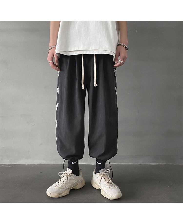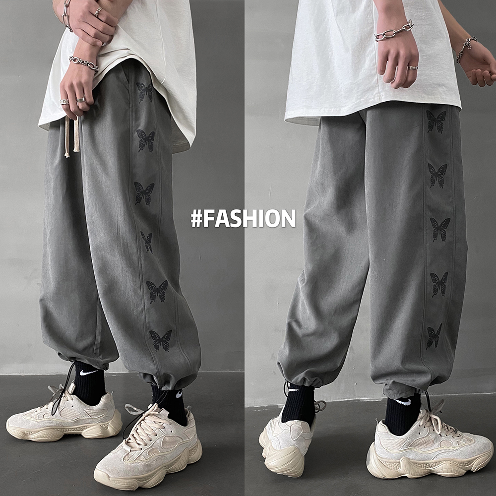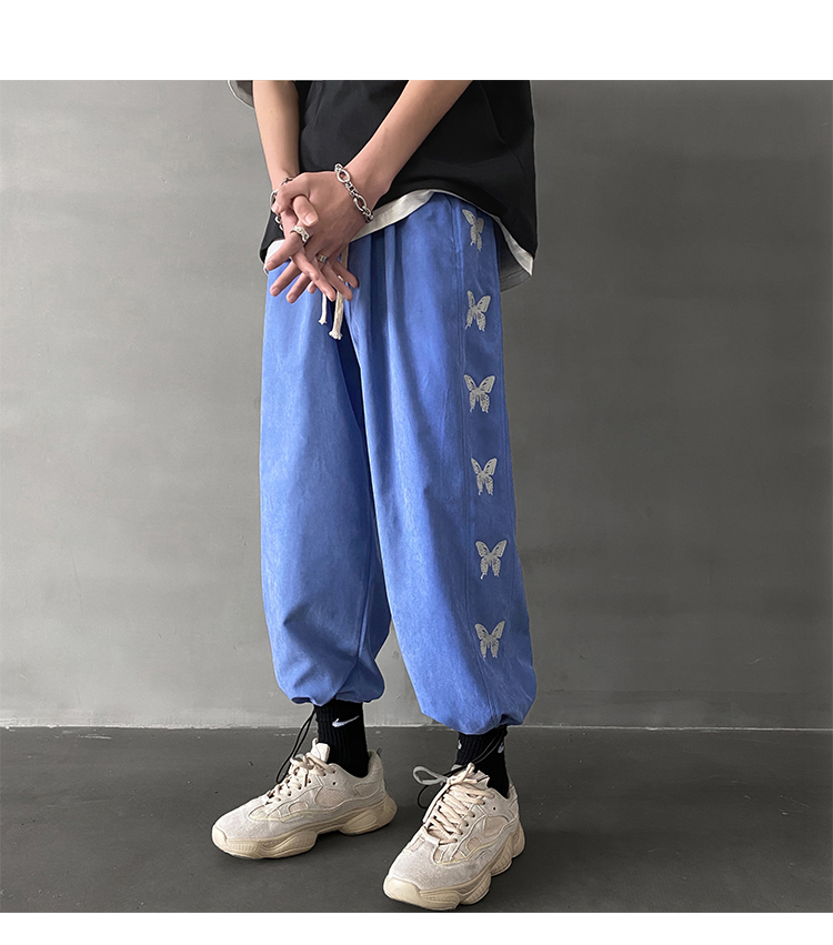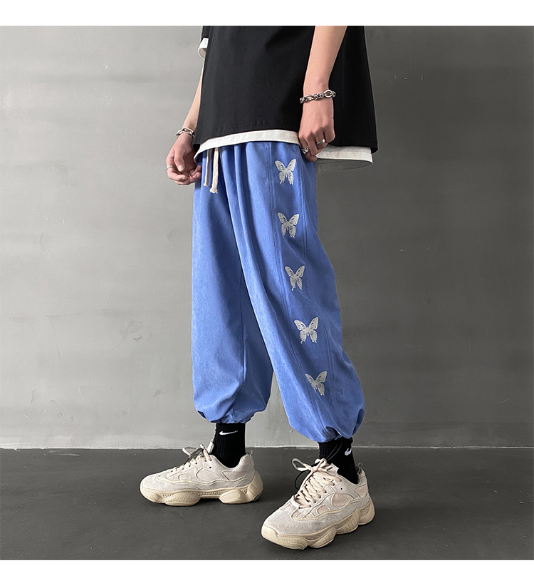ちょうちょ蝶刺繍プリントパンツボトムスジャージスウェットスエットズボンロング長ズボン黒ブラックレディースメンズキッズダンス衣装ヒップホップHIPHOPゴムハイウエストジョガーパンツ絞り奇抜派手ストリー