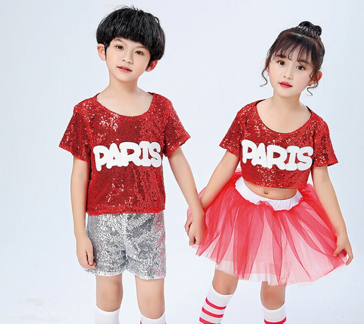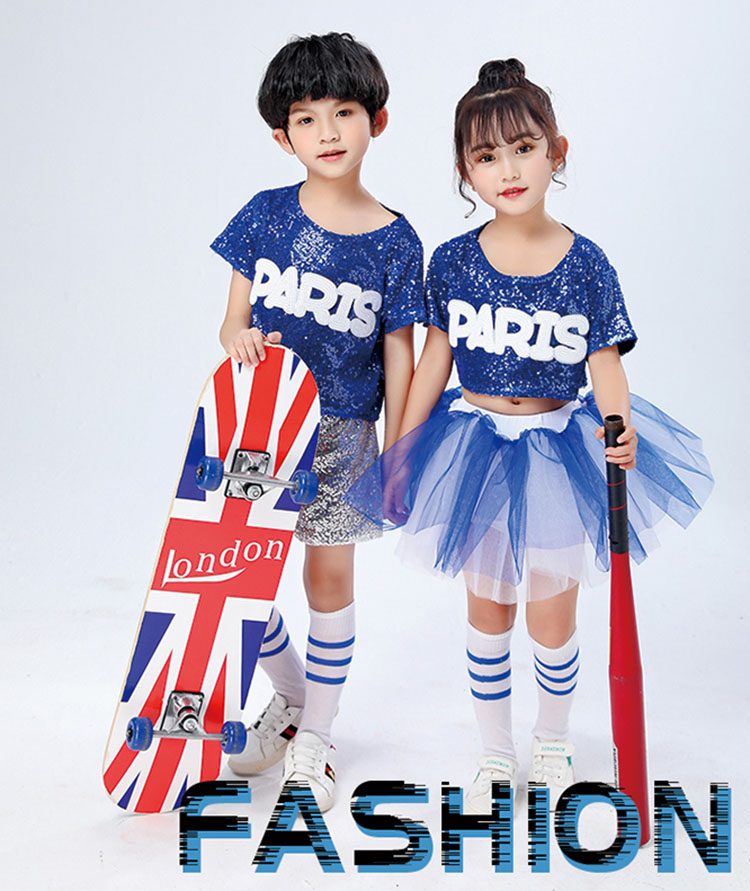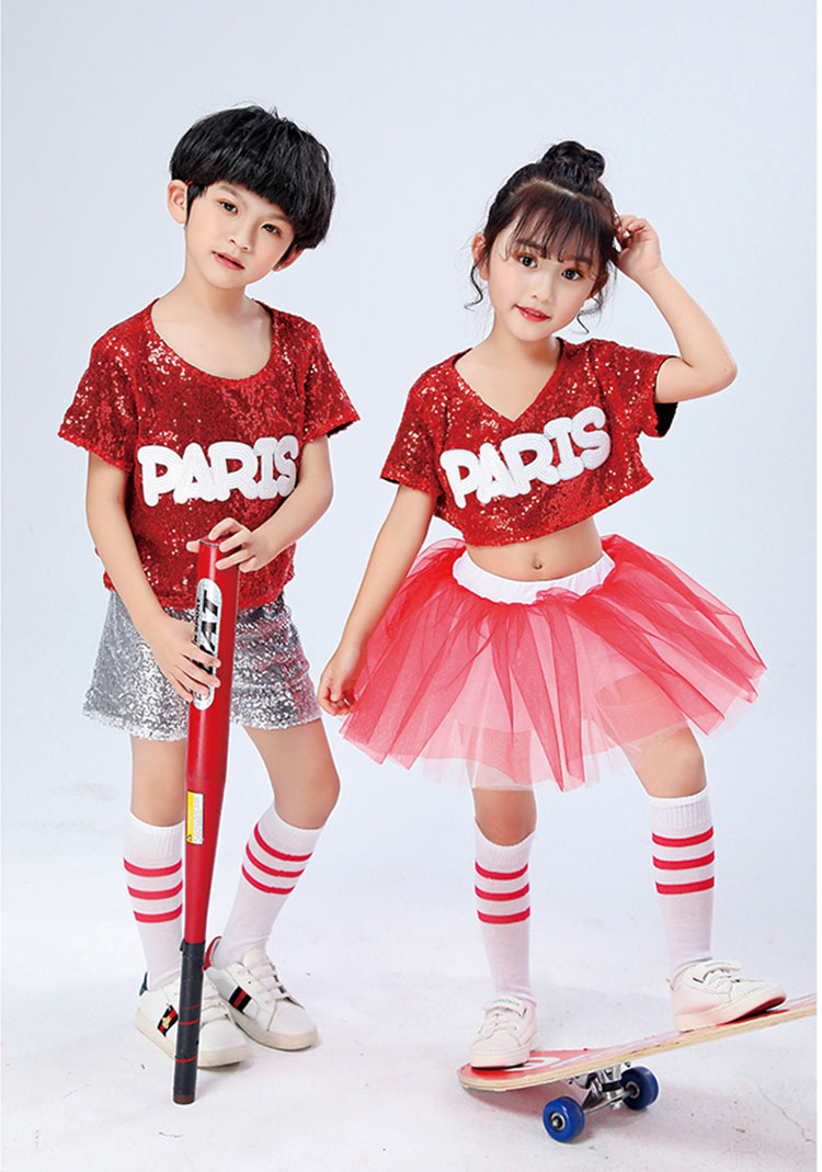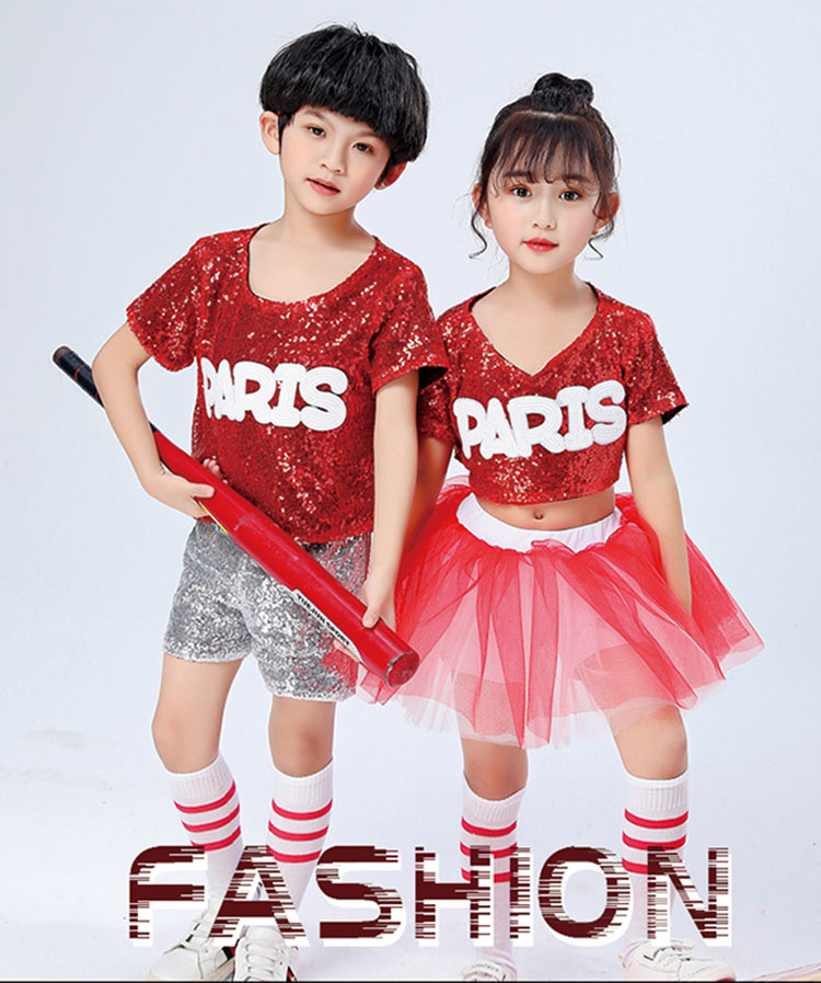 子供ダンス着 セット トップス&パンツ スカート ステージ衣装 スパンコール衣装 キラキラ 目立つ サークル 団体 文化祭 学園祭 ダンスウェア