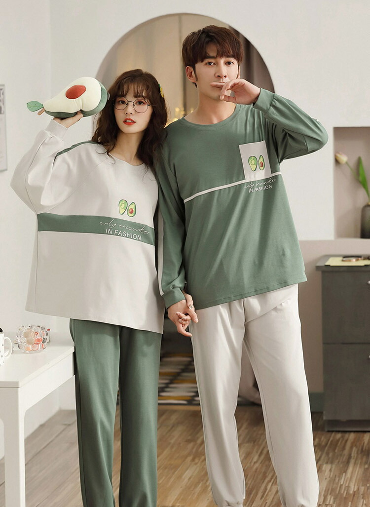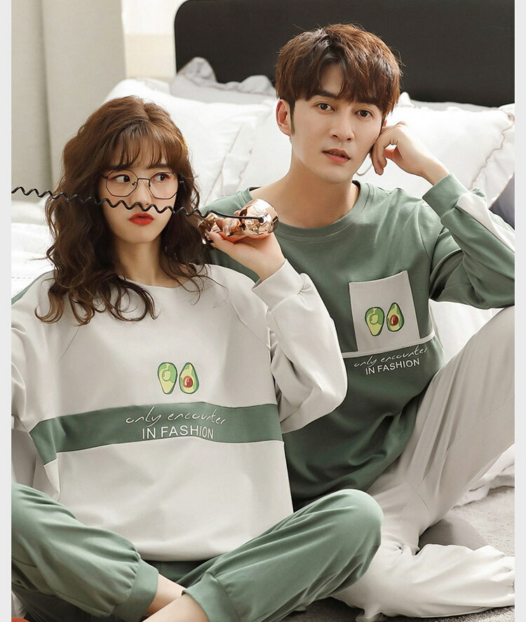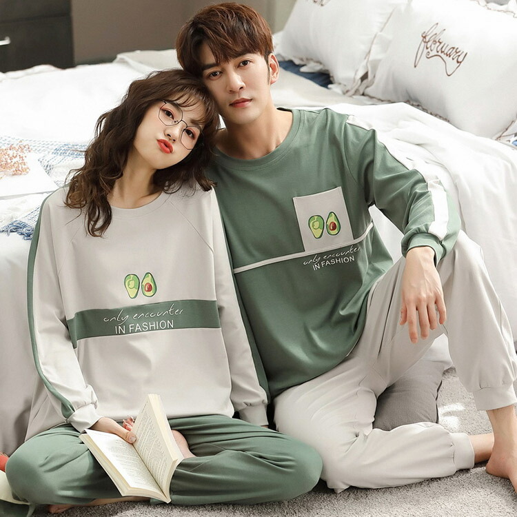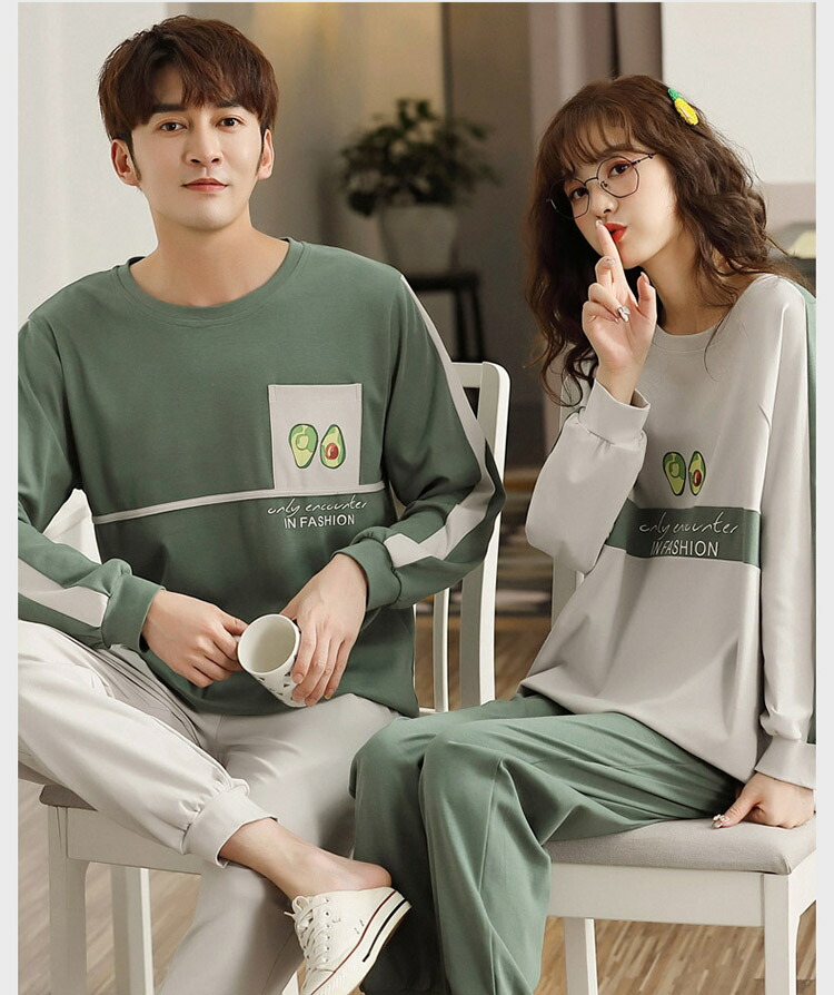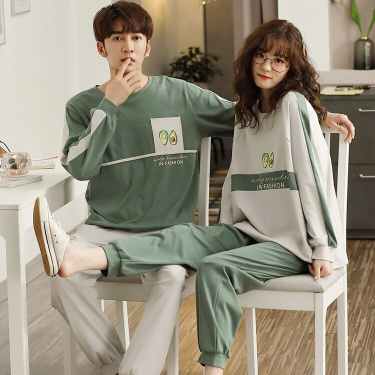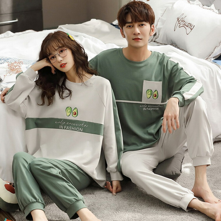 ペアパジャマ 秋 長袖 カップル 可愛
