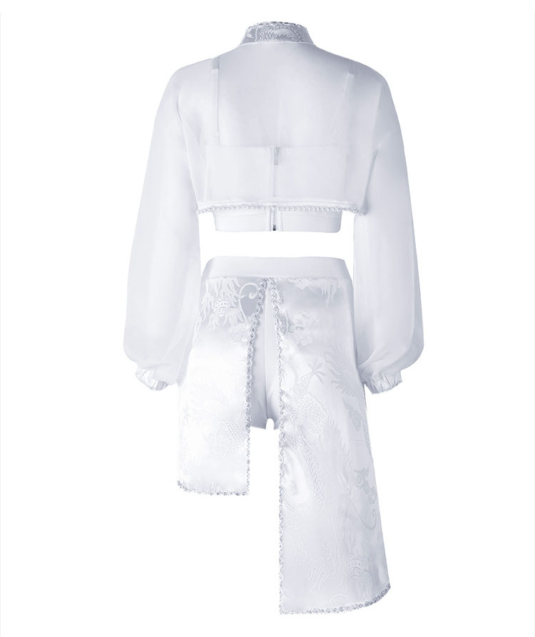 シアースリーブ ドッキングシャツ ボウタイシャツブラウス