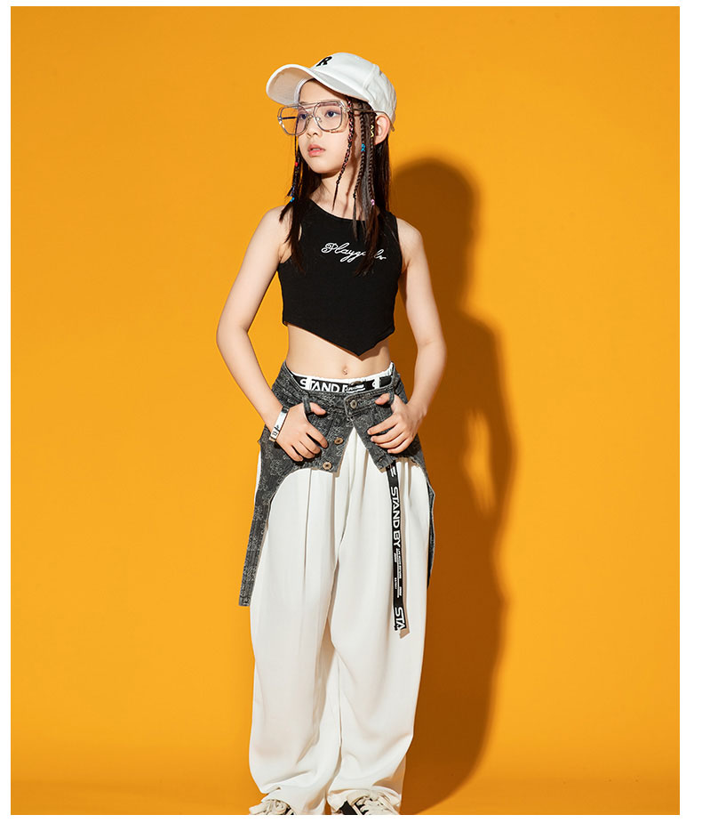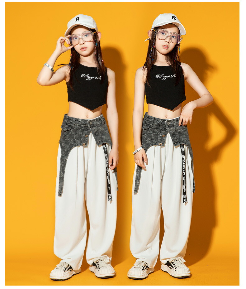 ダンス衣装 ヒップホップ キッズ デニムパンツ 女の子 かっこいい セットアップ 男の子 光沢感 シャツ 韓国 k-pop衣装 ジャズダンス 演出服 子供 イベント 発表会 演出服 応援 110 18