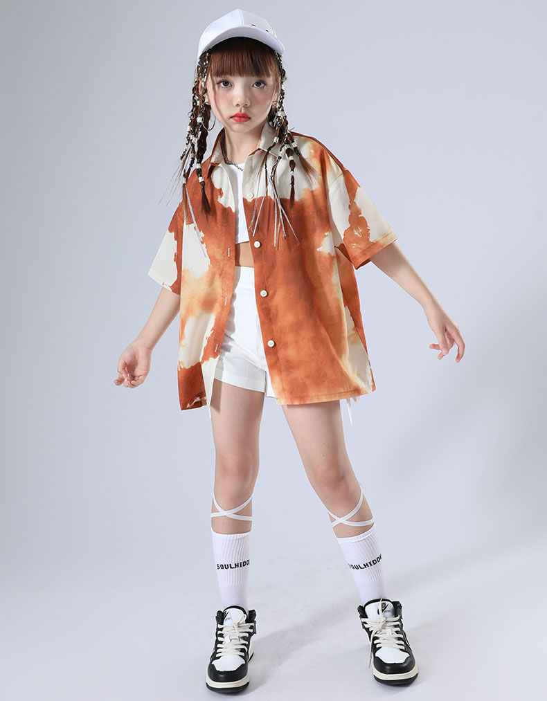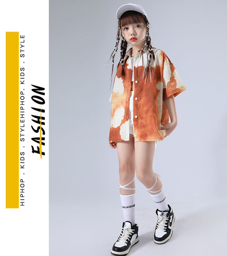 キッズ ダンス衣装 セットアップ 女の子 へそ出し トップス 黒シャツ ヒップホップ 韓国 k-pop衣装 かっこいい 演出服 ジュニア 子供 HIPHOP イベント 発表会 演出服 応援 110 1