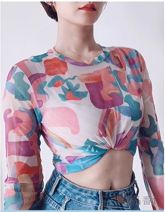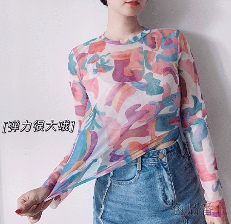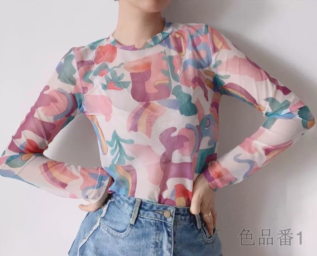 シースルーカラフルトップスカットソー長