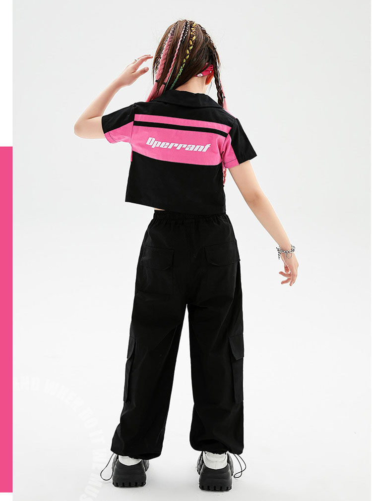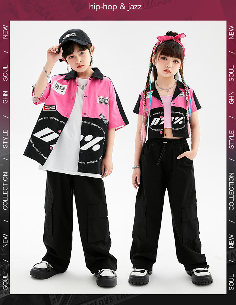 ダンス衣装 キッズ ヒップホップ ダンス 衣装 黒ダンスパンツ シャツ ゆったり ジャズダンス チアダンス 男の子 女の子 韓国 hiphop セットアップ 演出服 応援団 練習着 110 180