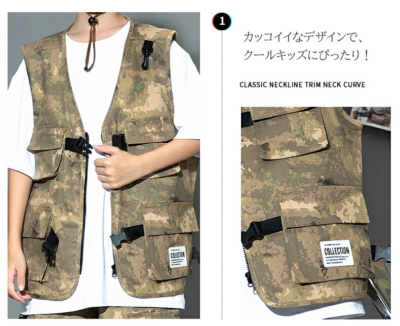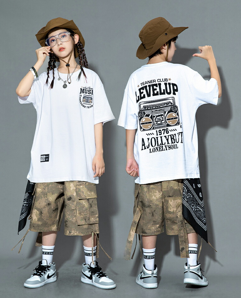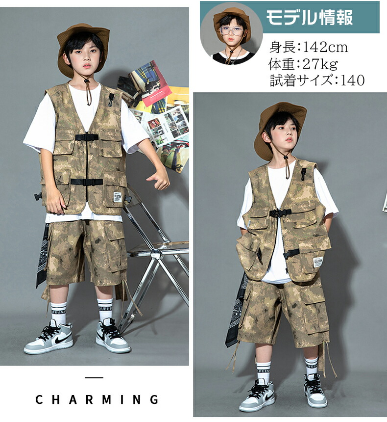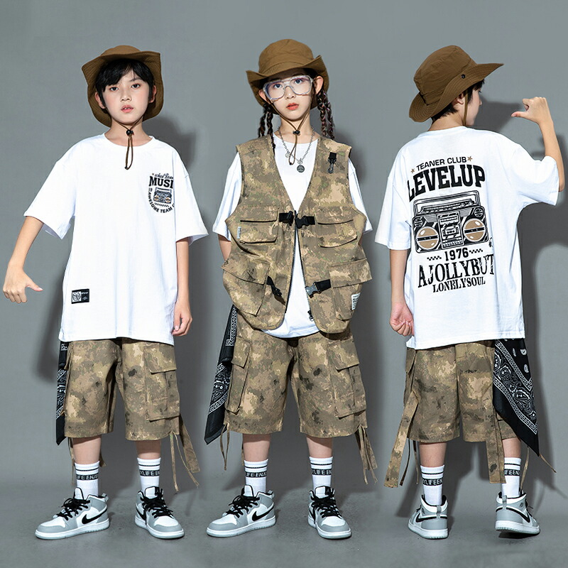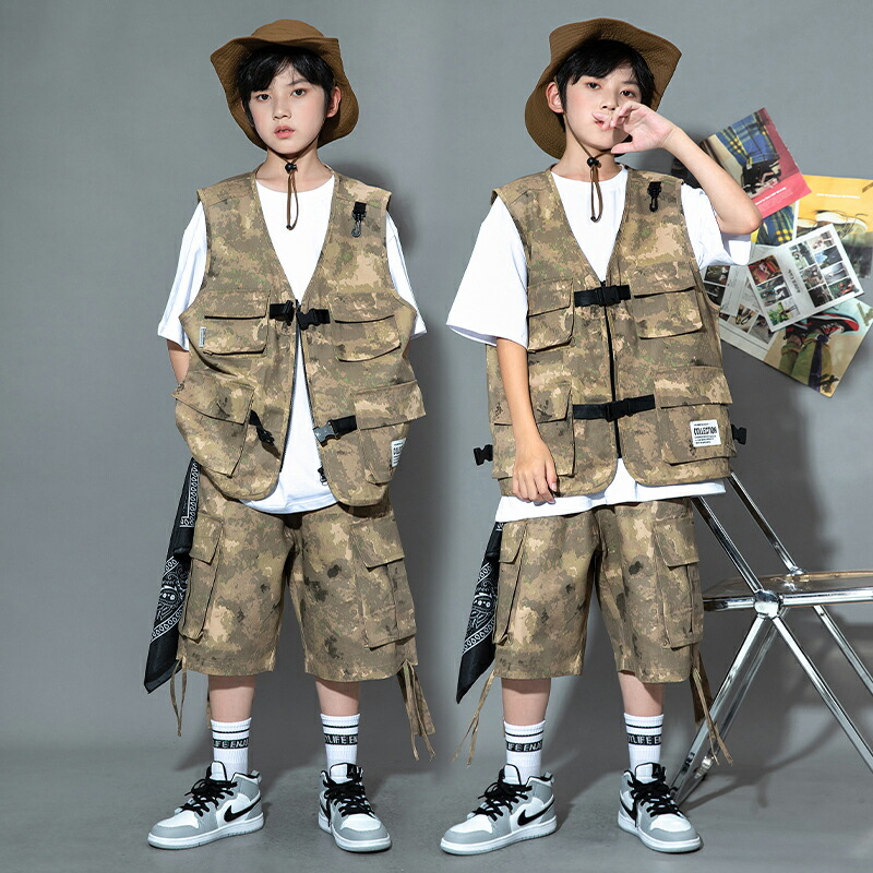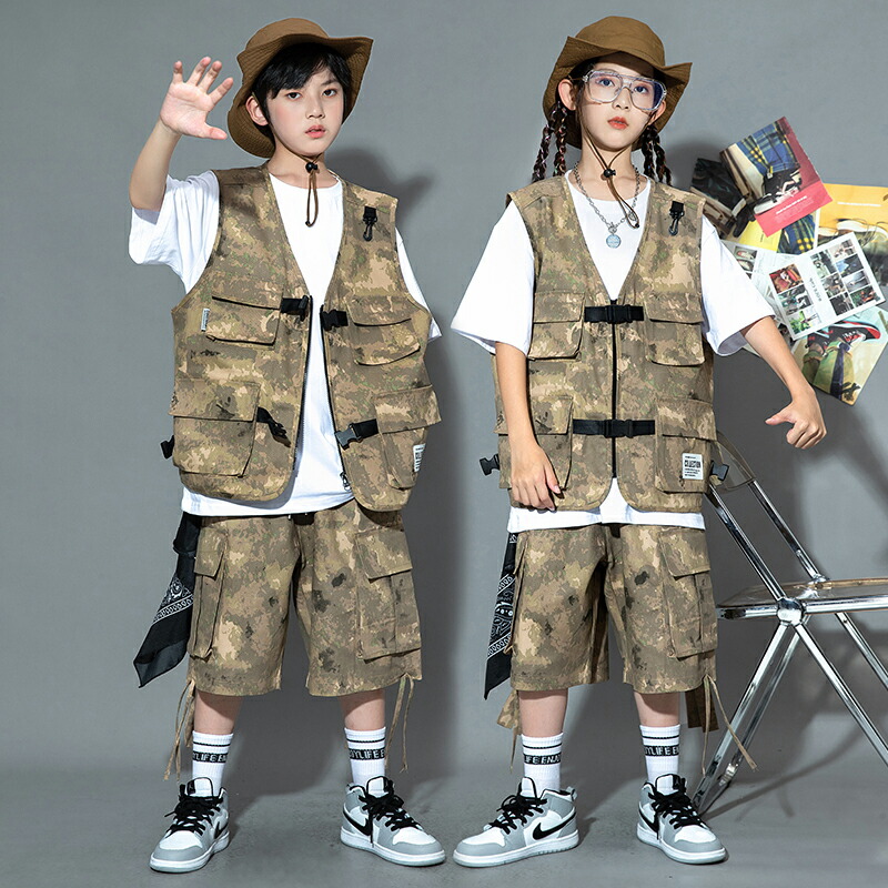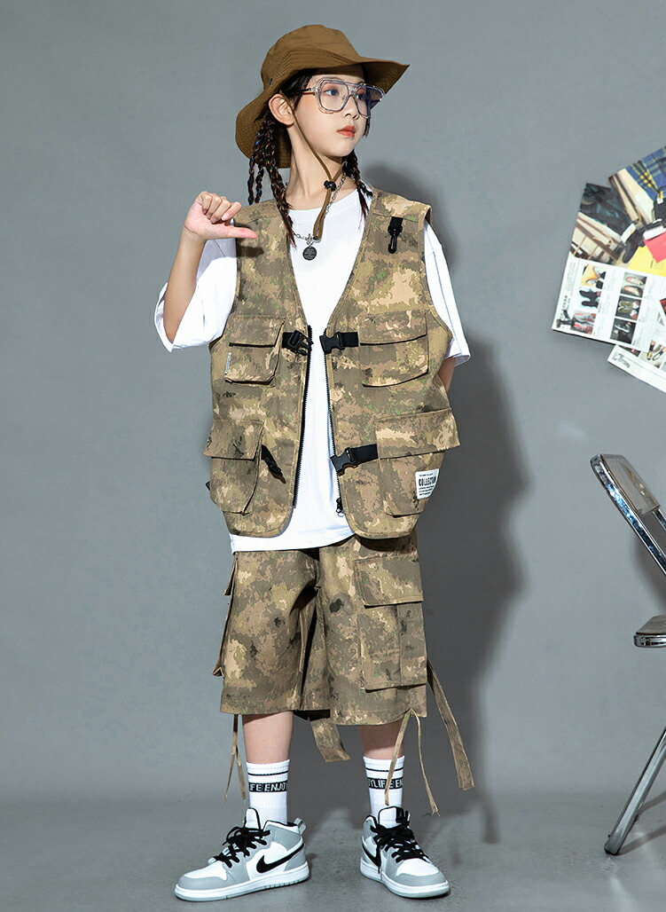 キッズ ダンス衣装 ベスト 迷彩 半ズ