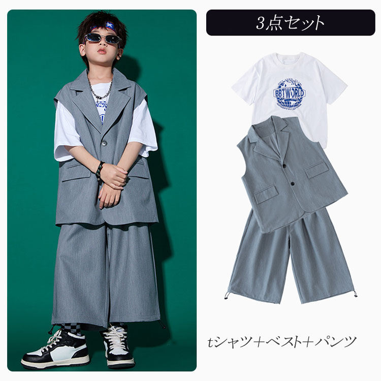 キッズ ダンス衣装 ダンススーツ フォーマル ベスト シャツ ブラウス パンツ ジャズダンス 男の子 ガールズ 韓国 ヒップホップ hiphop セットアップ 演出服 応援団 練習着 110 180