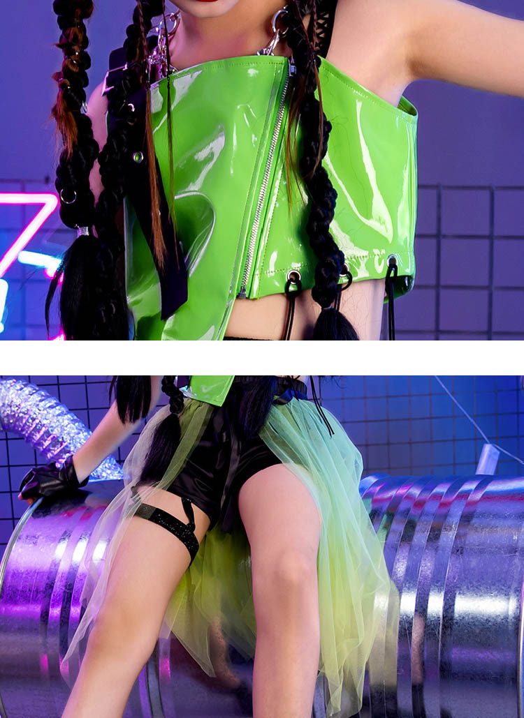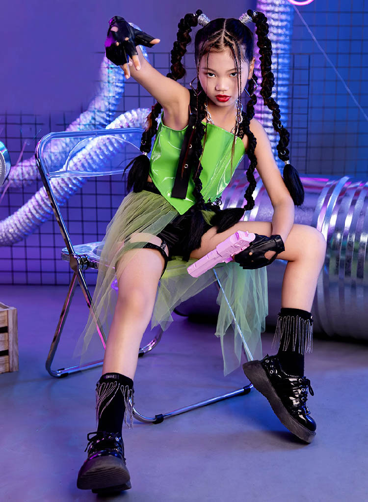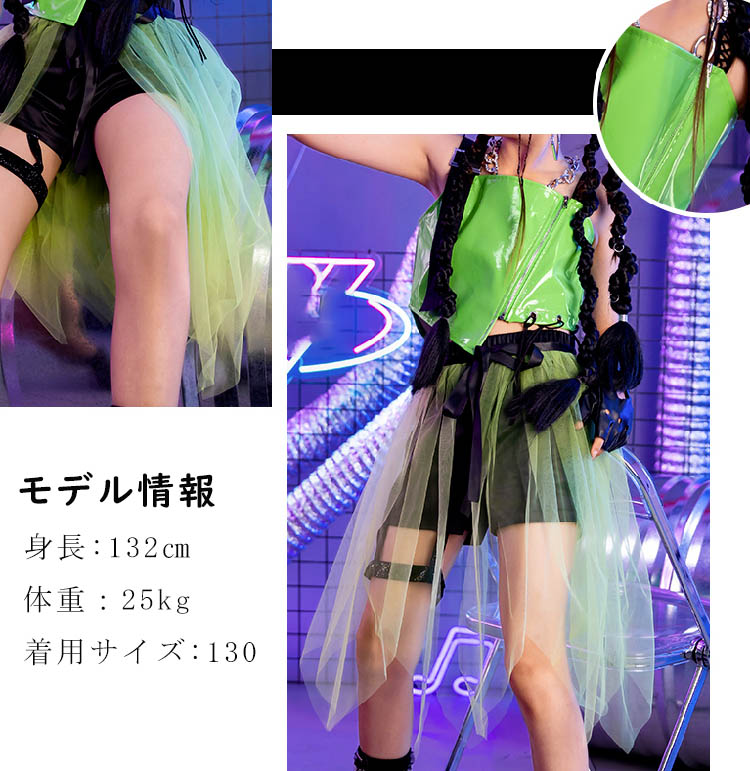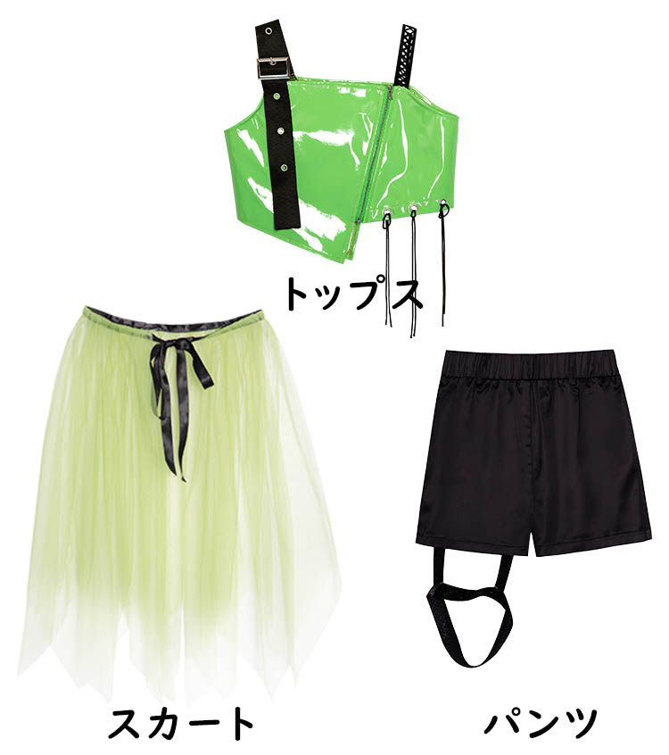 ダンス トップス へそ出し キッズ 緑