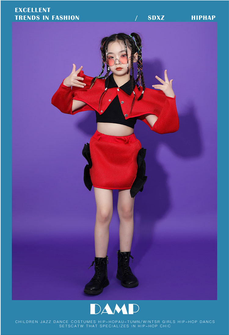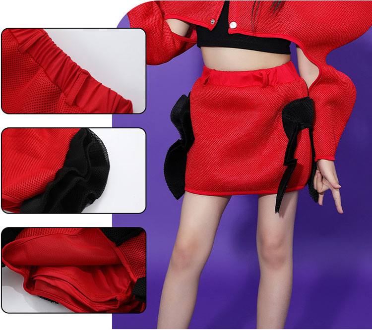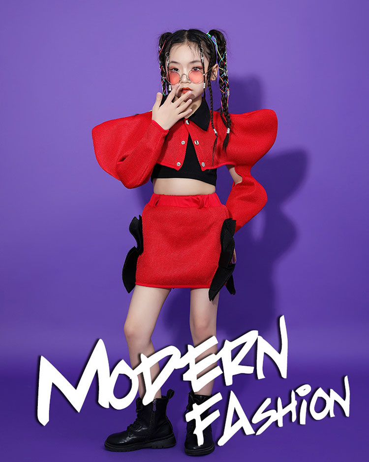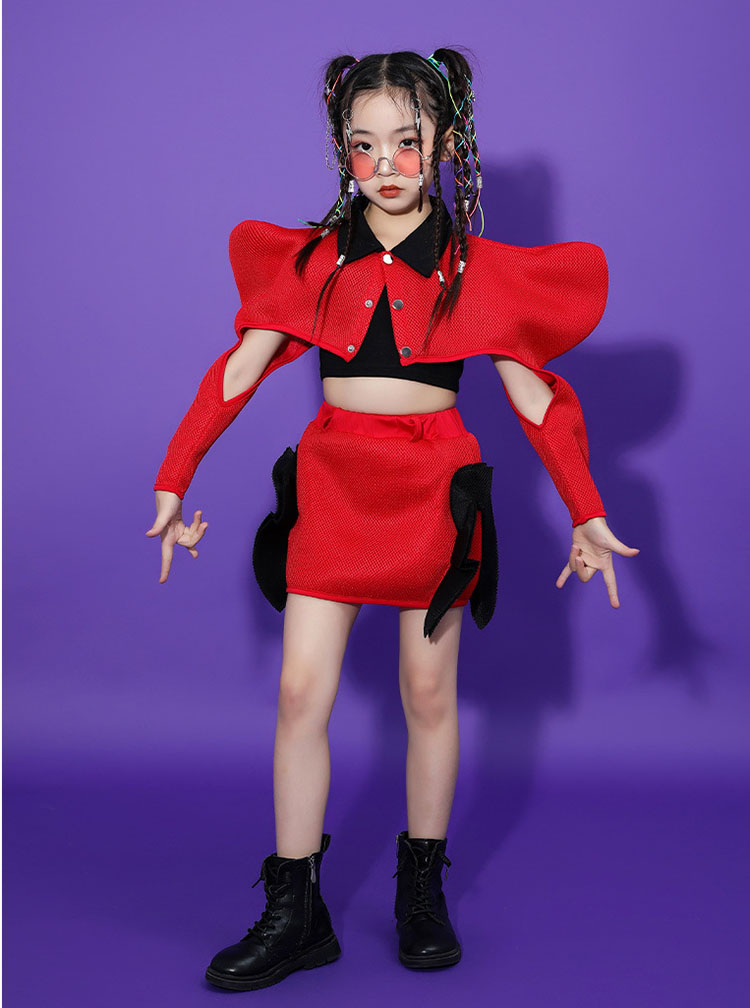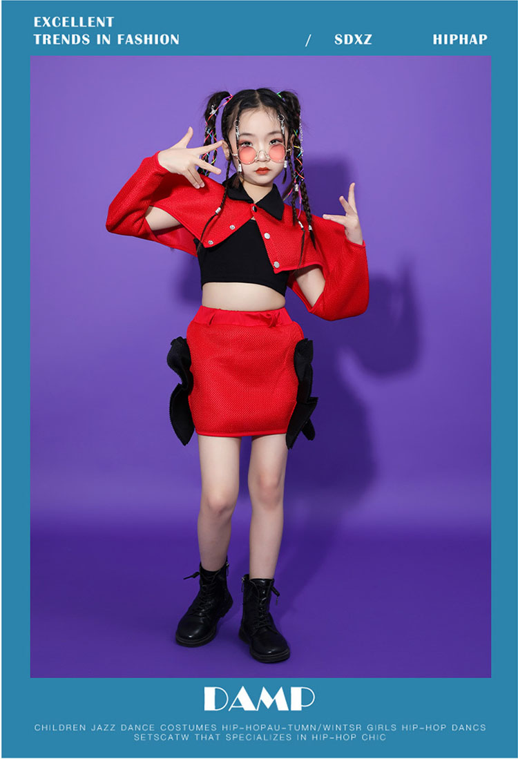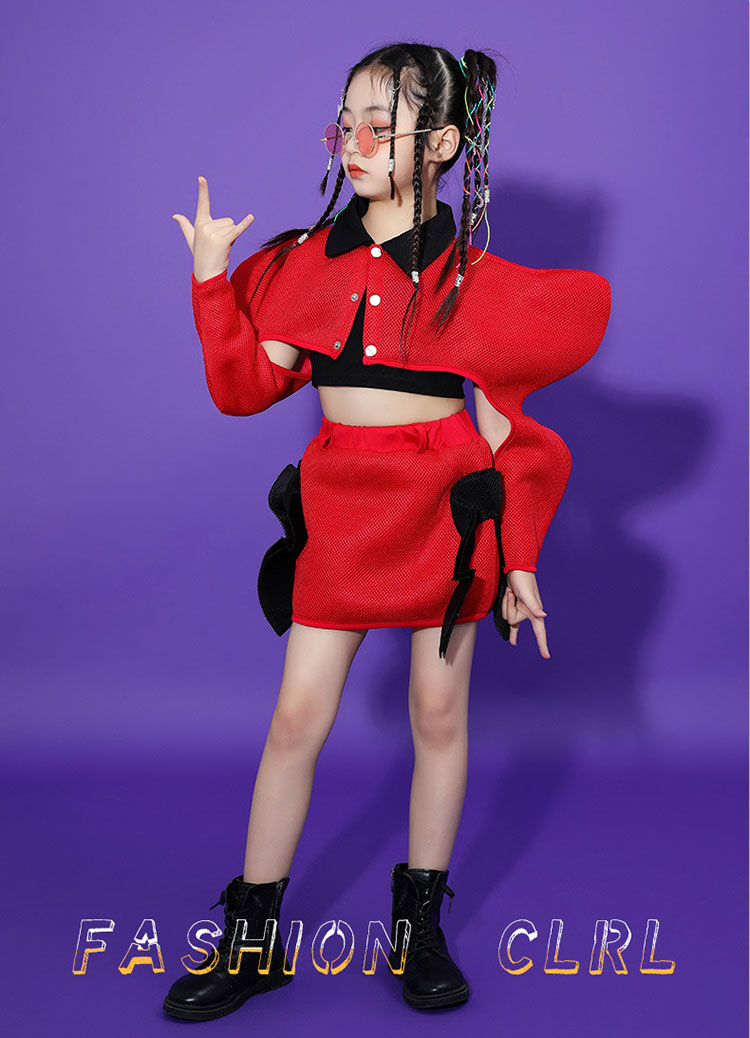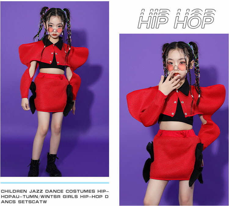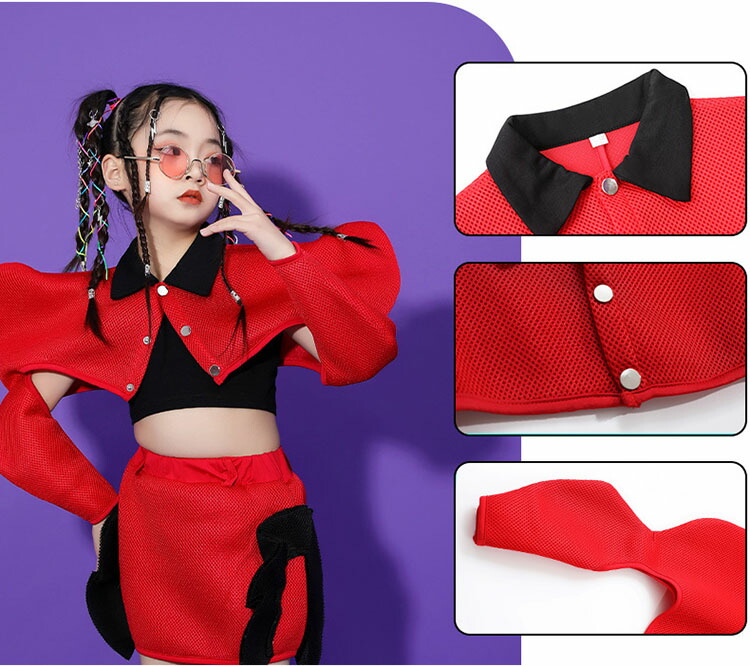 キッズ ダンス衣装 セットアップ へそ出し レッド チアダンス 衣装 ジャズダンス ガールズ 韓国 ヒップホップ セットアップ 演出服 応援団 練習着 レッスンウエア 110-180cm
