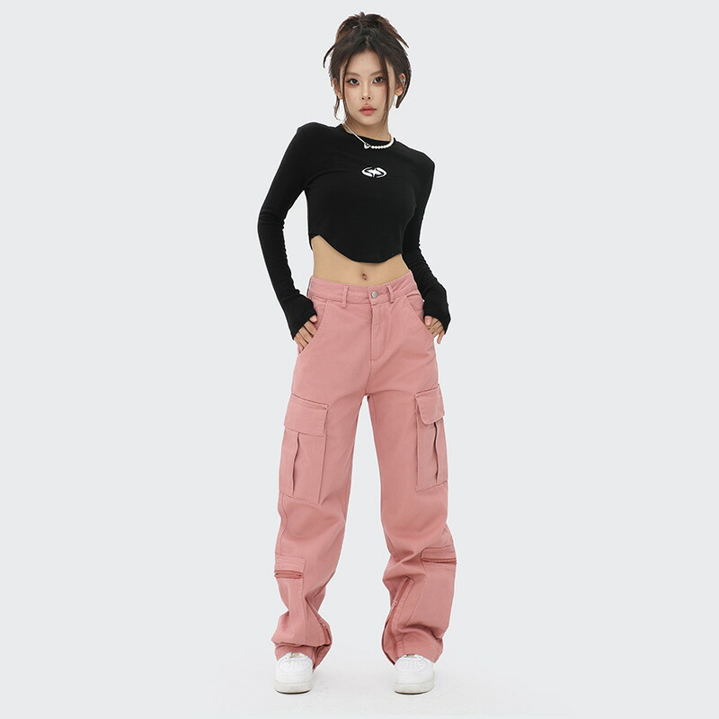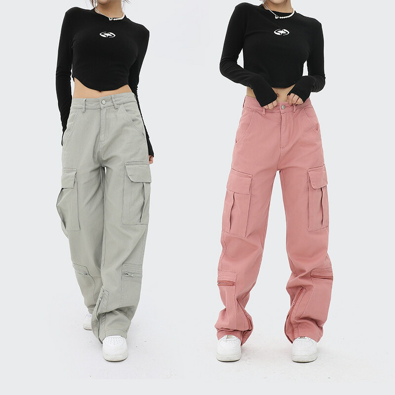 k-pop 衣装 カーゴパンツ レディース ダンス衣装 灰色 ピンク グレー ワイドパンツ ヒップホップ jazz ダンス